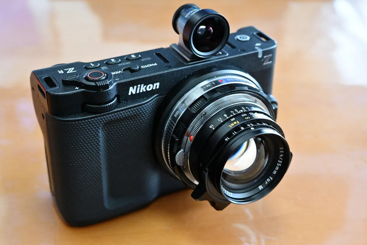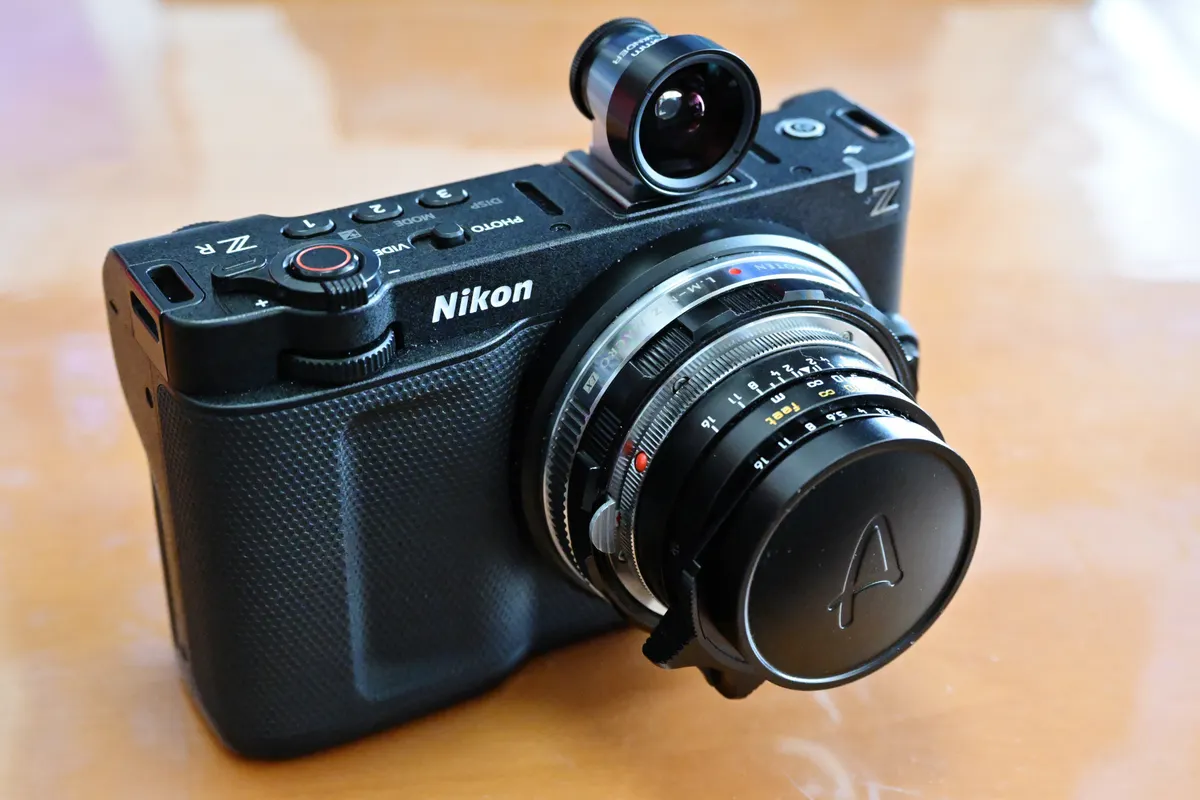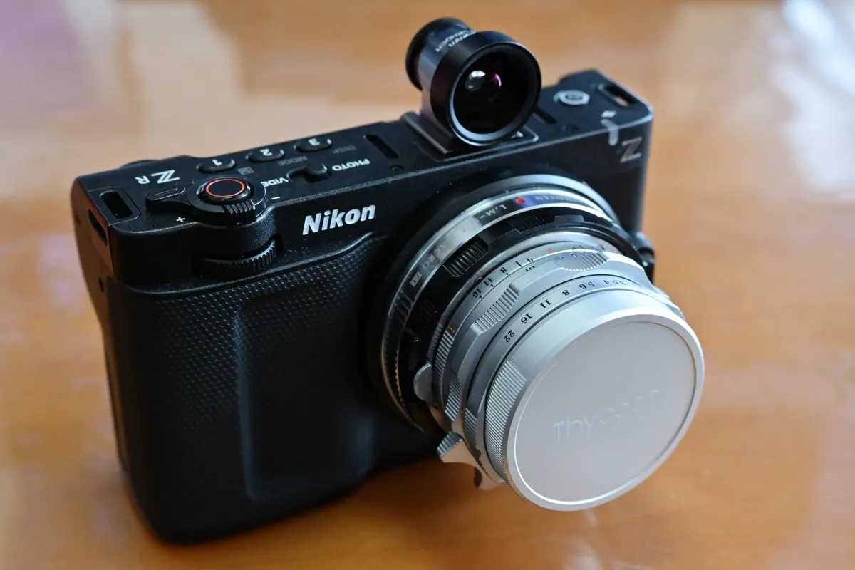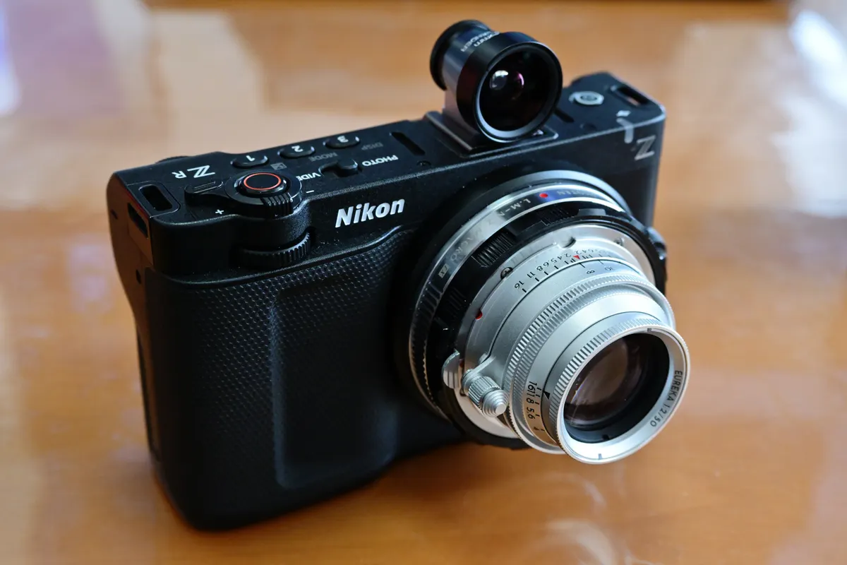 Nikon ZRにはファインダーが無いので、雰囲気作りのため、光学ファインダー「COSINA 21/25mm Viewfinder M」を付けています。