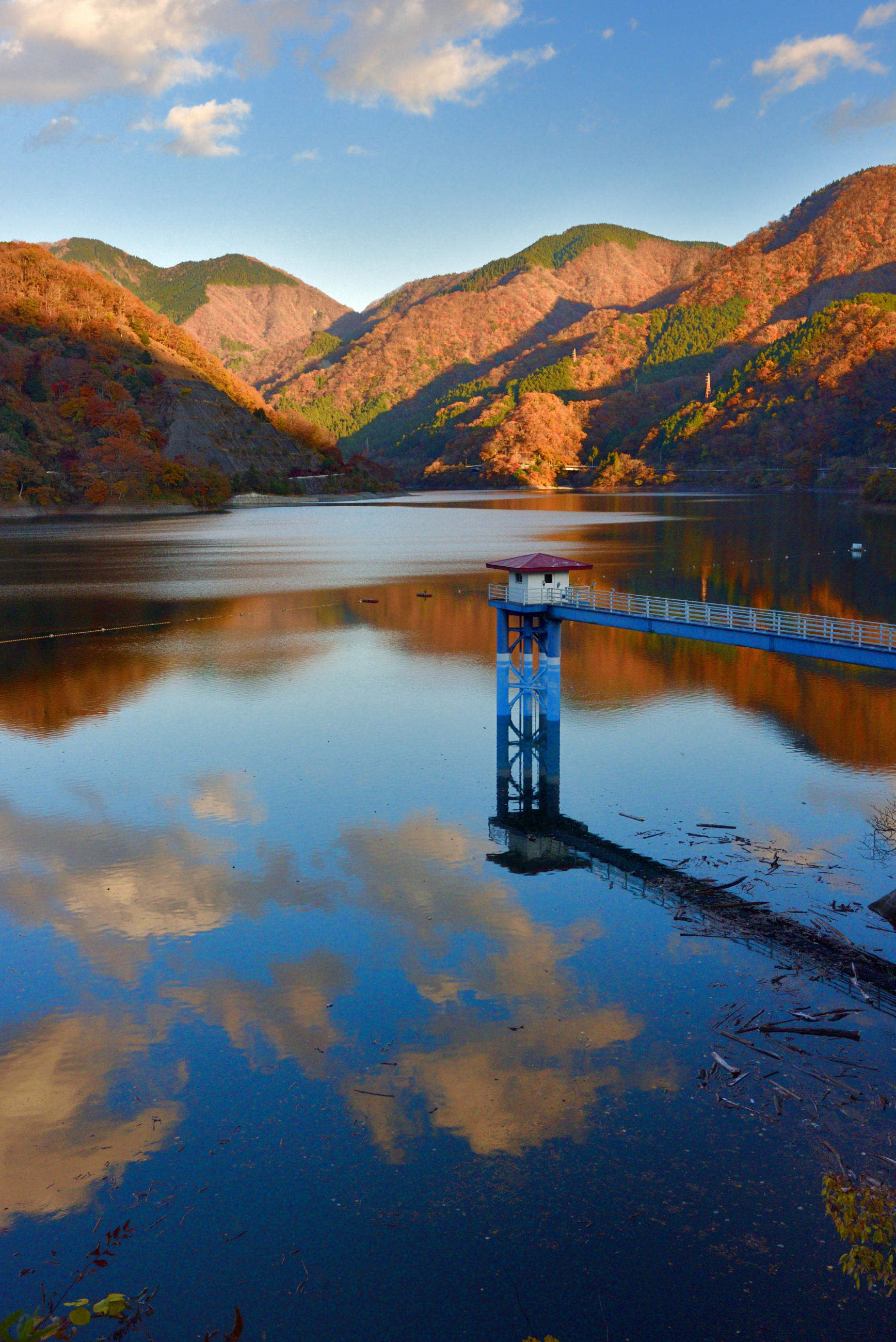 そんな事で紅葉は見る事が出来ませんでしたが、美しい山肌は健在でしたので沢山撮ってきました。日が傾きかけて山肌のコントラストが損なわれていますが、日の当たる場所は美しく輝いていました。この日は、風のほとんどない日で湖面に空や山肌を美しく映していました。^^