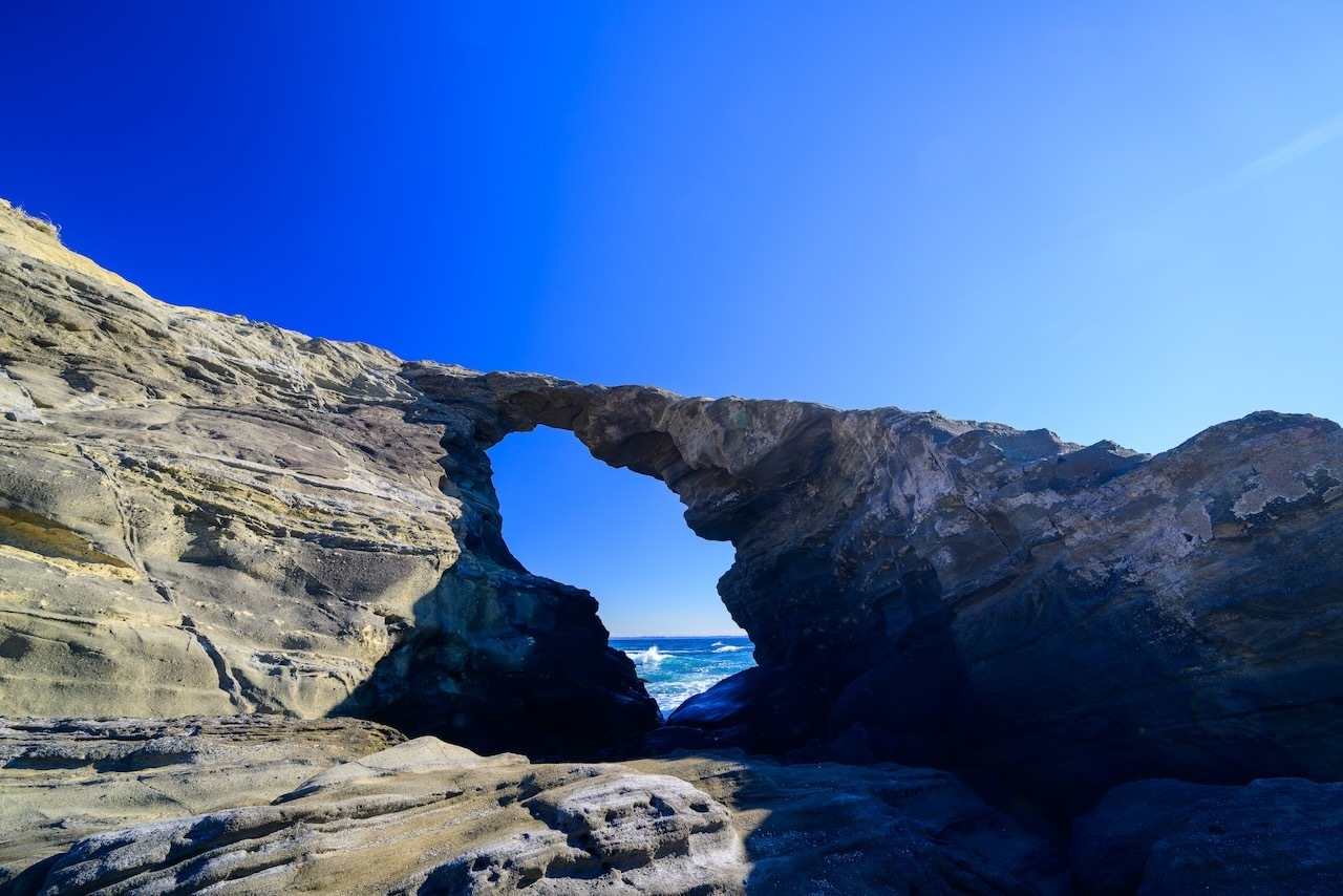 アイキャッチ画像は、有名な馬の背洞門です。