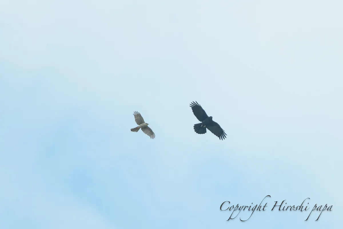 トップ > メンバーズ・フォト > 動物・ペット > え? パパ 2026/01/24 11:11 え? 何が「え?」か・・・ 「ハイタカ?・・・種類解りません」が「カラス」を追いかけてる! これは非常に稀なケース? 少なくとも私は初めて出くわした光景、普通はカラスが鷹を追いかけてるんだが・・・ いいね 共有する 共有する X facebook LINE リンクをコピー コメントする 0 件の返信 (新着順)