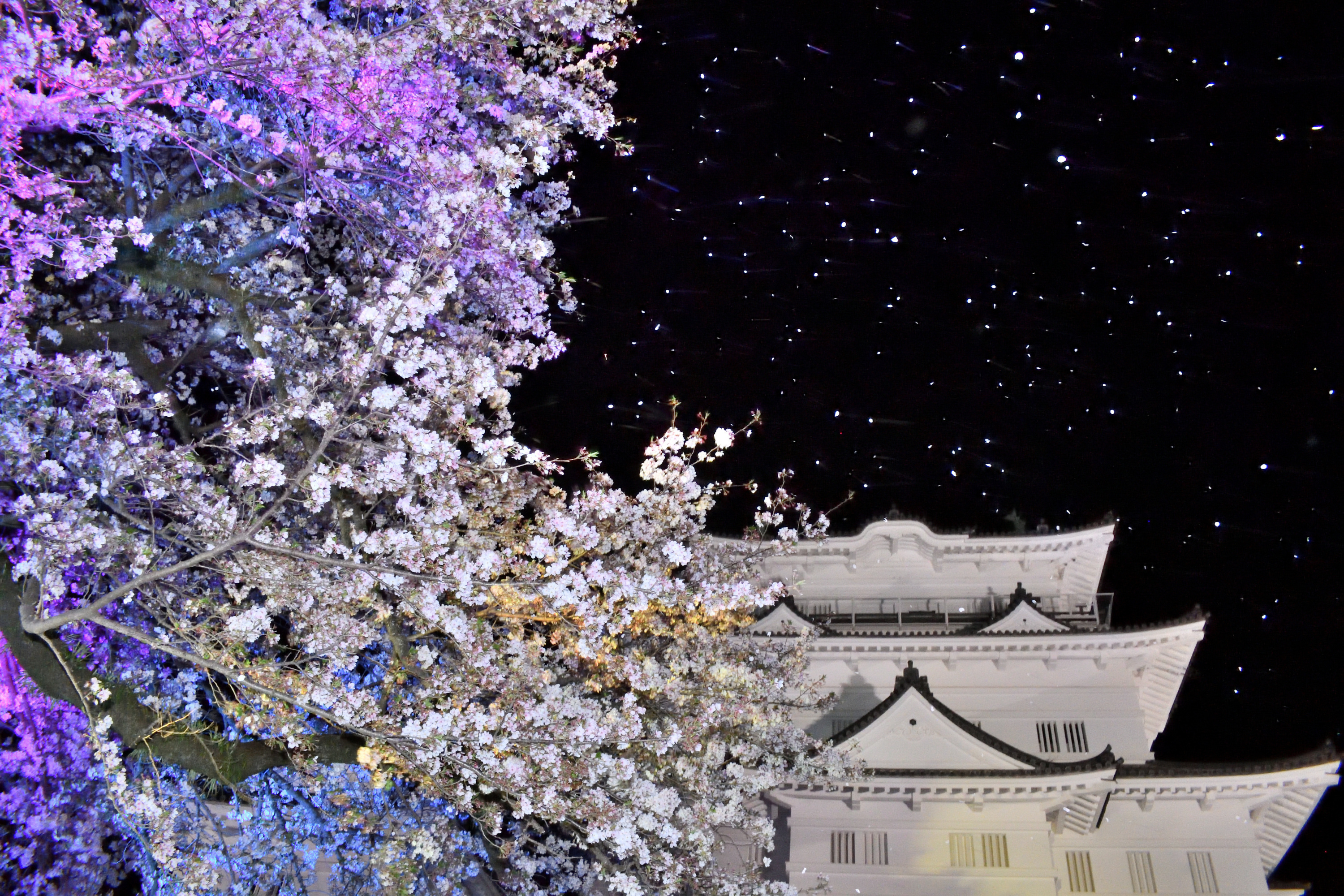 投稿を表示ライトアップされたお城に光る花吹雪が幻想的ですね~!