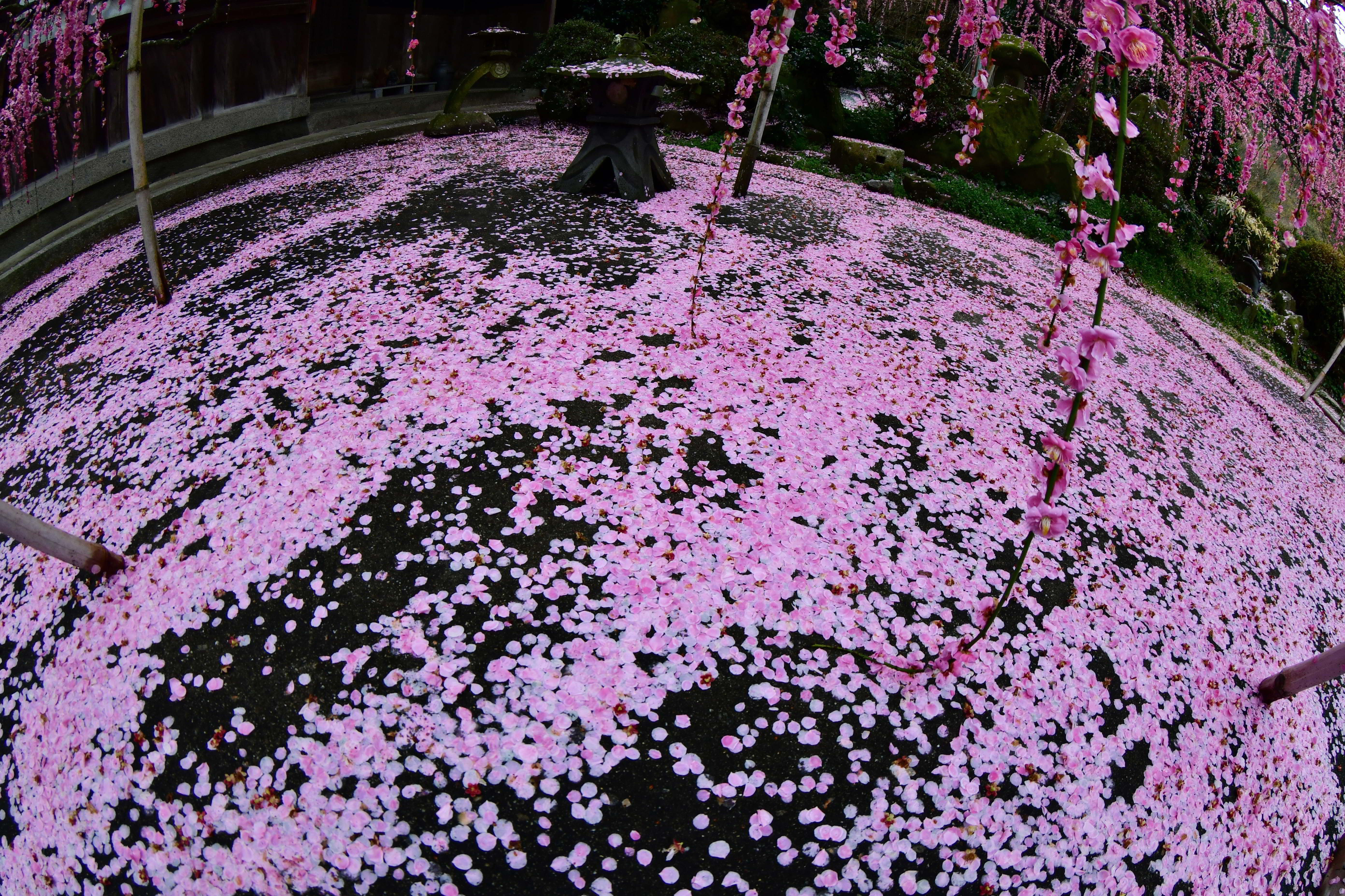 投稿を表示しだれ梅の花びらが地面一杯に散った光景、美しいですね~。フィッシュアイでプレーム一杯に美しさが広がっています。このような光景を予測されて撮影に行かれたのはさすがです。梅の美しい姿を知り尽くしたHachiroさんならではの作品ですね。^^