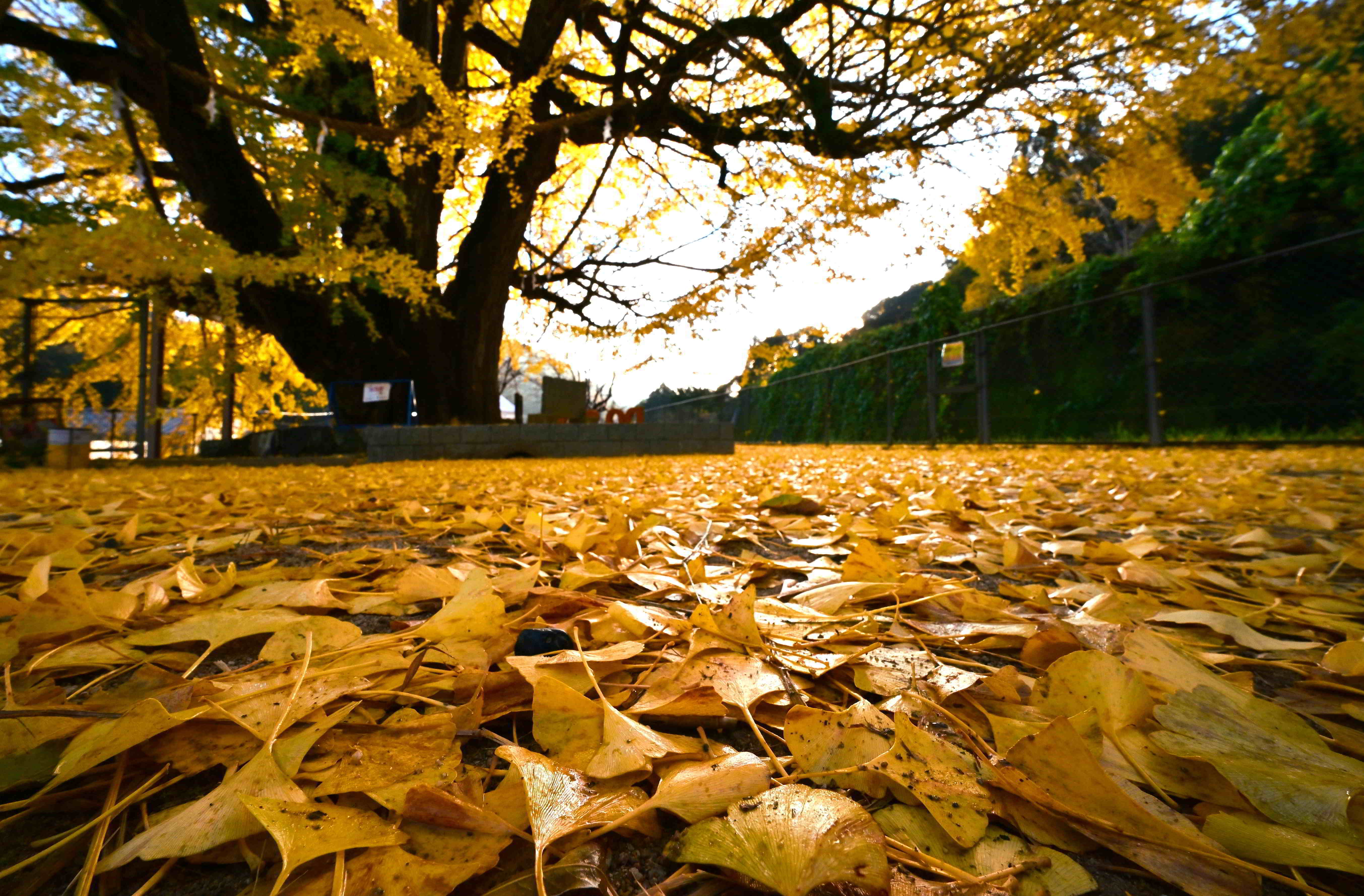まだ葉が青いとの情報で月末か来月初めに撮影しようと考えていたら、落葉しているとのこと、朝5時に家を出て撮影しました。前夜雨だったようで、誰も踏みつけていない奇麗な落葉です。