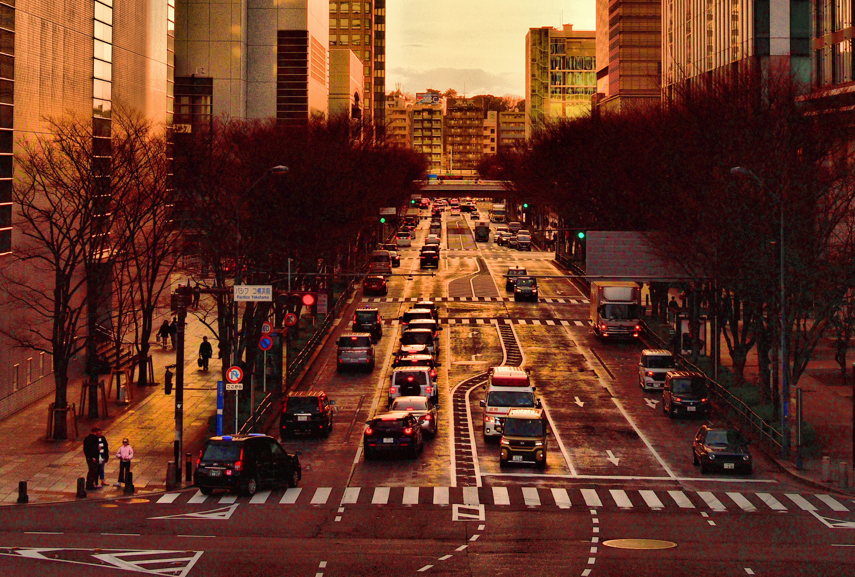 投稿を表示雨上がりなのか道路の一部が光り、素敵な黄昏ですね。