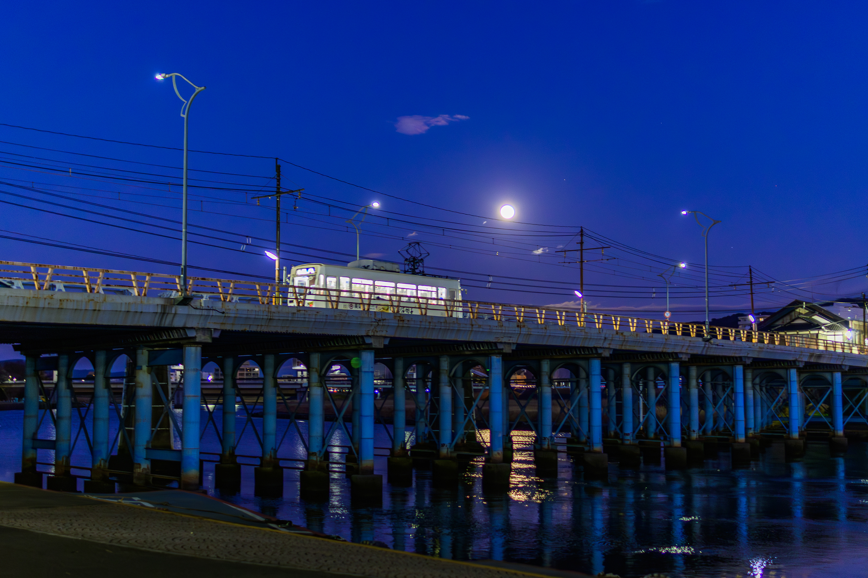 トップ > メンバーズ・フォト > 街風景 > 2026岡山初撮り 月夜の京橋・白い市電:20260103 #1 Admura 2026/01/04 17:47 2026岡山初撮り 月夜の京橋・白い市電:20260103 #1 ウォーキングがてら、月が綺麗に浮かんでいたので、京橋付近で白い市電とともにパシャリ。この日が岡山での2026年新年初撮りでした。 輝く月と水面が美しく、京橋とそこを通過する市電も美しかった。 ●場所/京橋付近(岡山市)●撮影/Nikon Z50Ⅱ pickup 京橋 月夜 市電 冬色チャレンジ いいね 共有する 共有する X facebook LINE リンクをコピー コメントする 0 件の返信 (新着順)