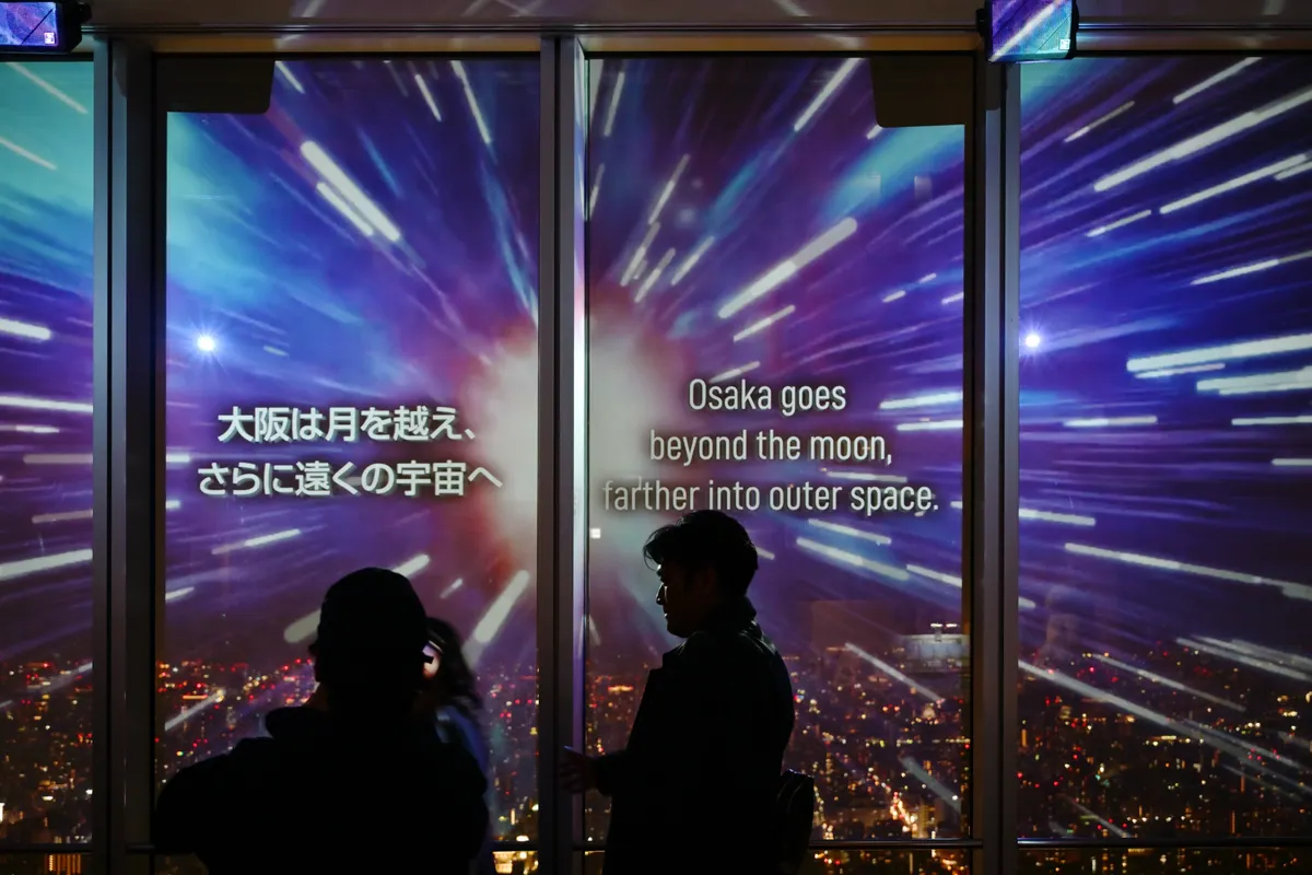 そして、夜の部になると、プロジェクションマッピングされた映像「もしも大阪が宇宙に迷い込んだら」が流れます(下段にURL貼り付けておくので、興味のある方は参照ください)。