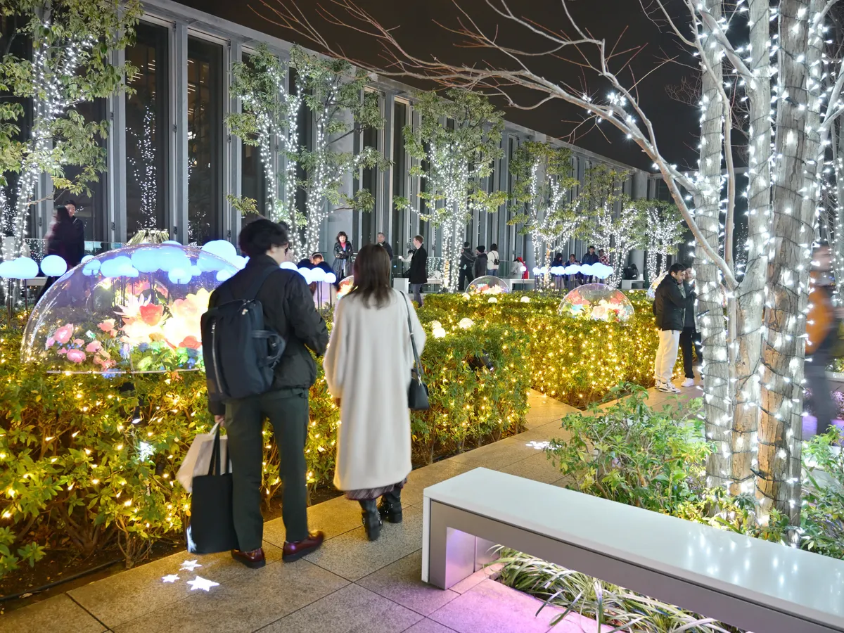 と、ハルカス300での夜景を堪能した後、16階に降りて来たら、すぐ外の野外庭園にイルミネーションが!みなさん、記念写真を熱心に撮られていました。