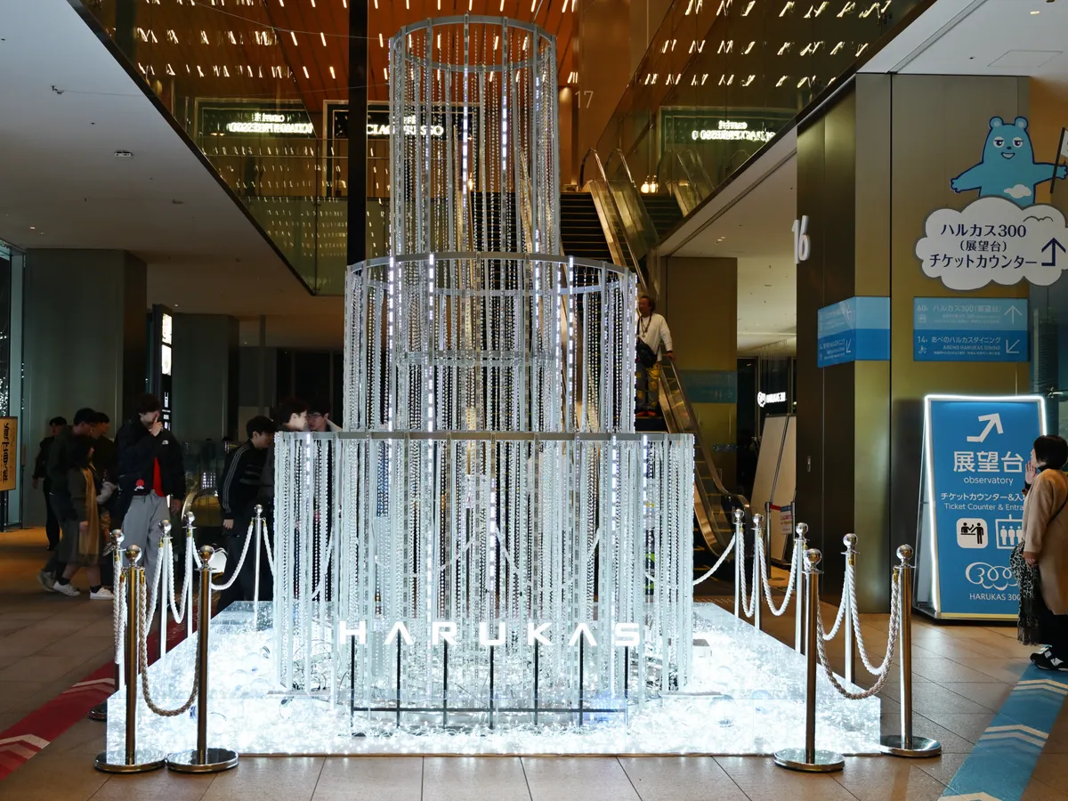 最後は、HARUKASのツリーが見送ってくれました。このツリーの右手奥に展望台へ登るエレベータが在ります。