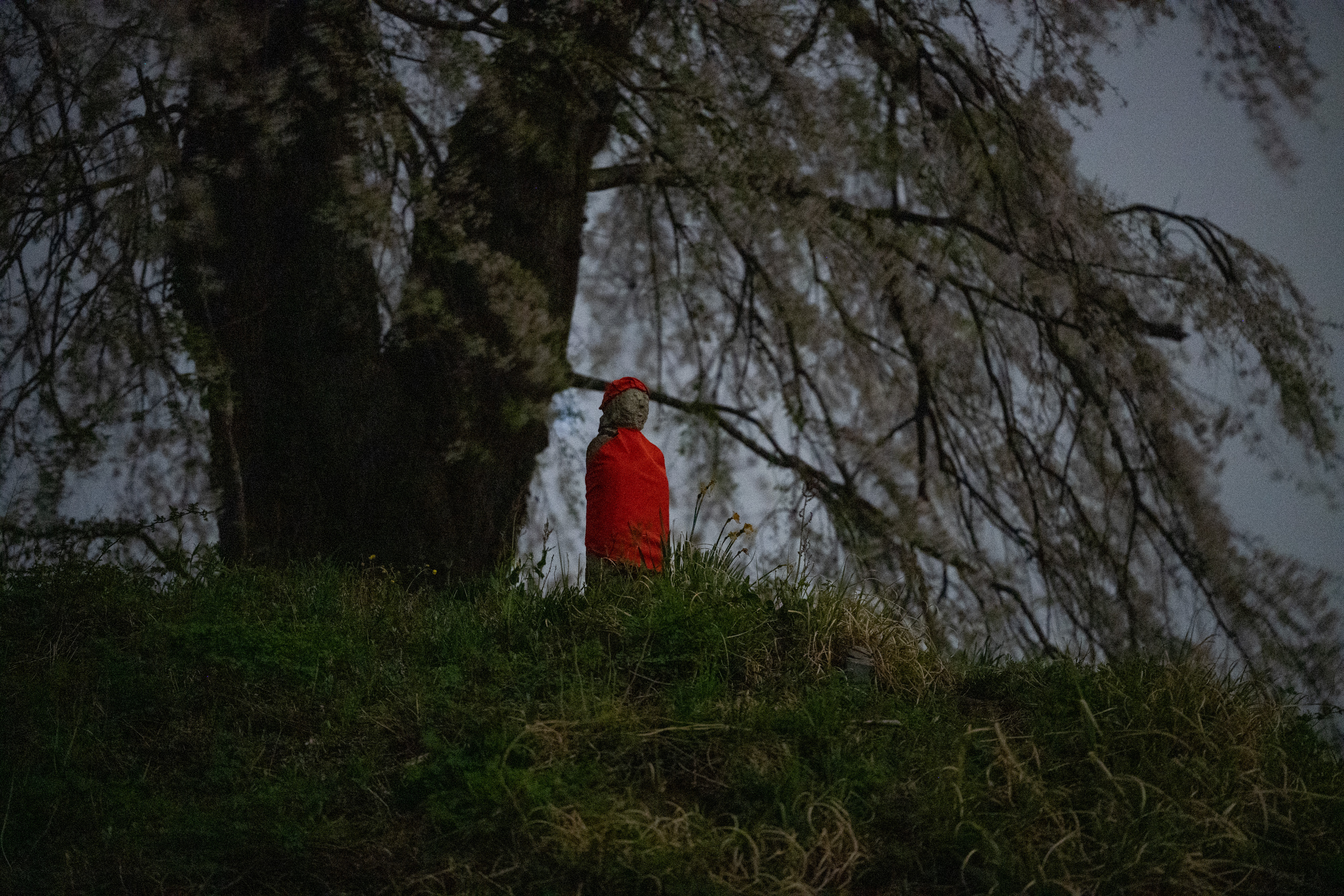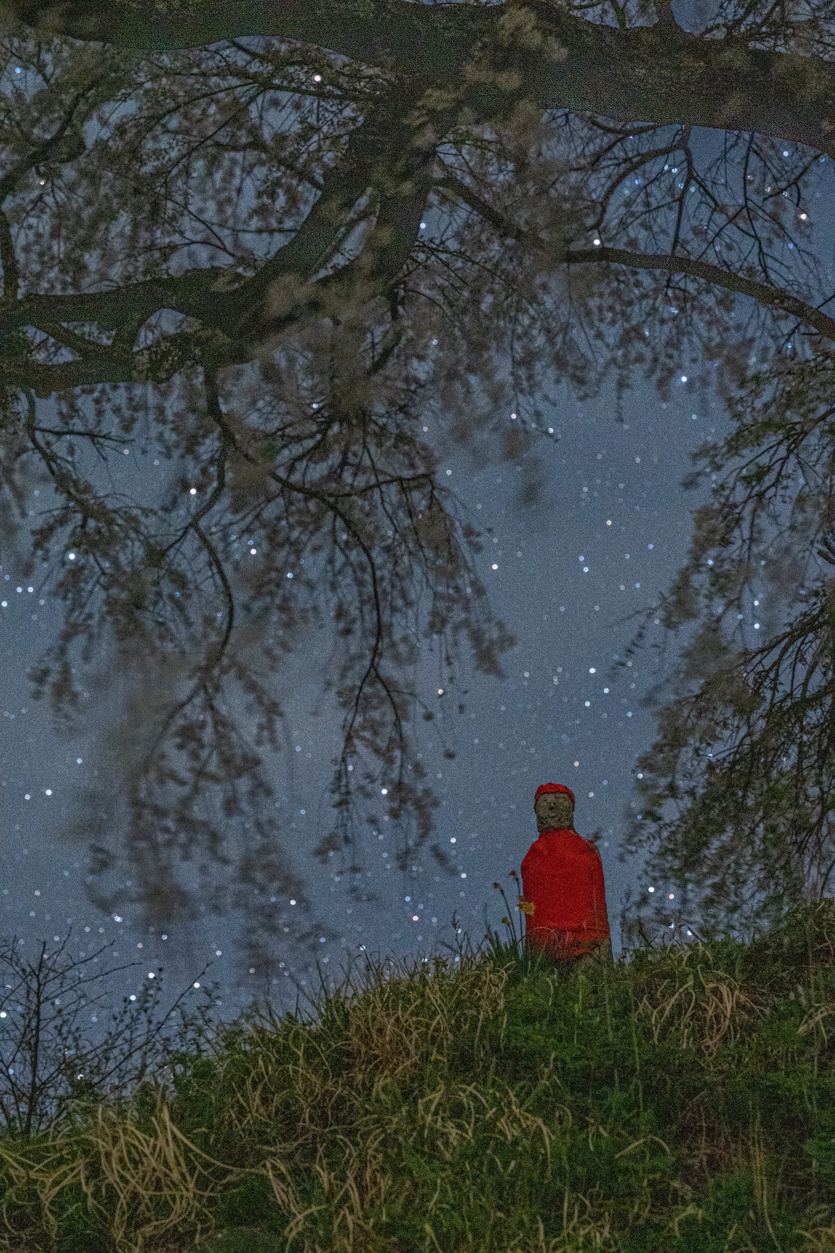 群馬県沼田市『上発知のシダレザクラ』にあるお地蔵さんを星空と合わせてみました❗️