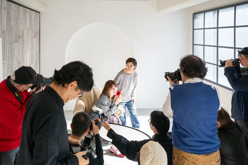 受講生の皆さまは、ワークショップとは異なり一対一での撮影を行い、佐藤先生から「シャッターはもったいぶらずに切りまくる」、「お互いの緊張をほぐすためにもモデルさんとのコミュニケーションを大切に」など、アドバイスを受けながら撮影を行いました📸