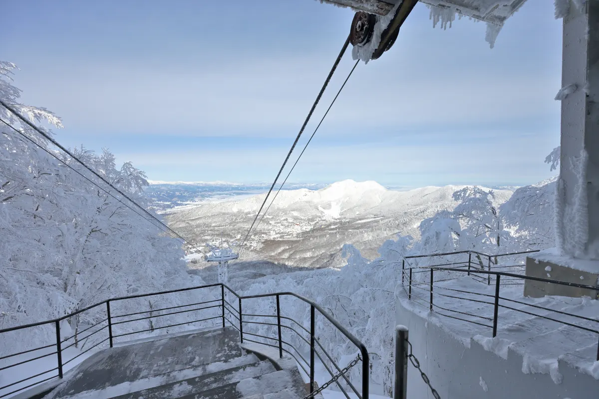 リフトを乗り継いで山頂まで到着しました❗️見事な樹氷です😊
