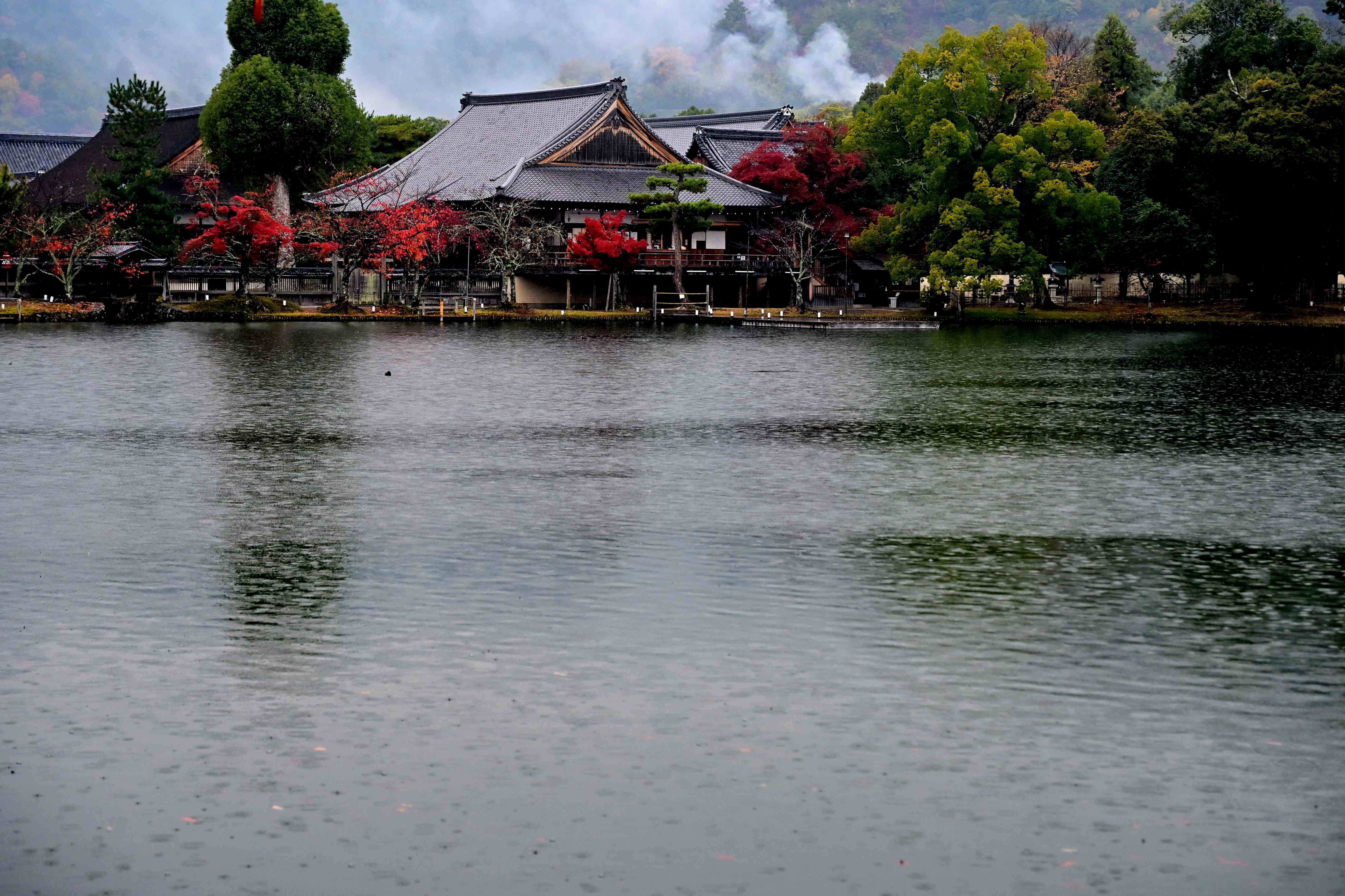 [秋色チャレンジ][秋雨に煙る大覚寺]