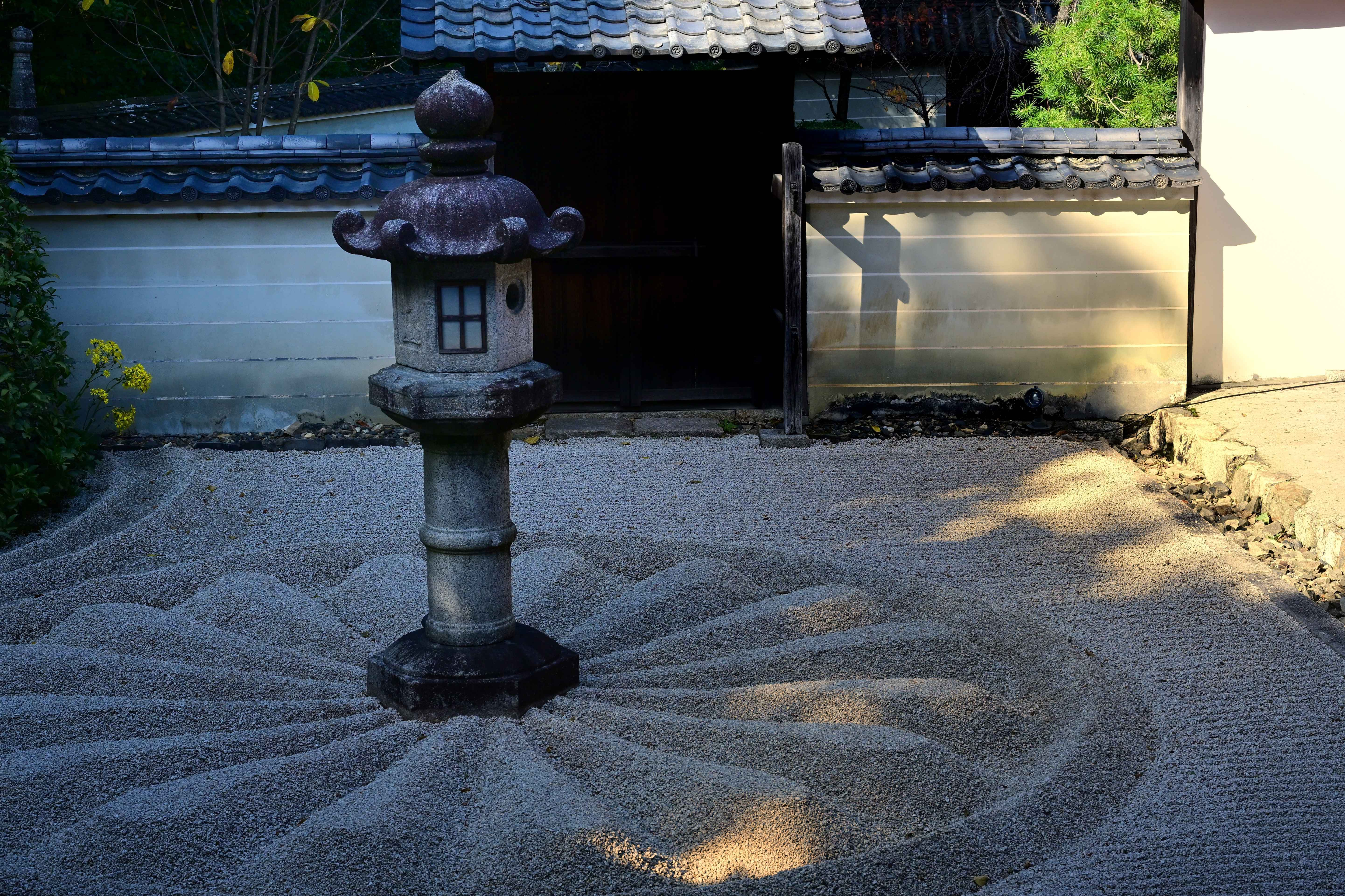 投稿を表示冬至も来月に控え、長い影が目を惹く秋の光景ですね。石灯籠に砂のアートも美しい姿です。^^