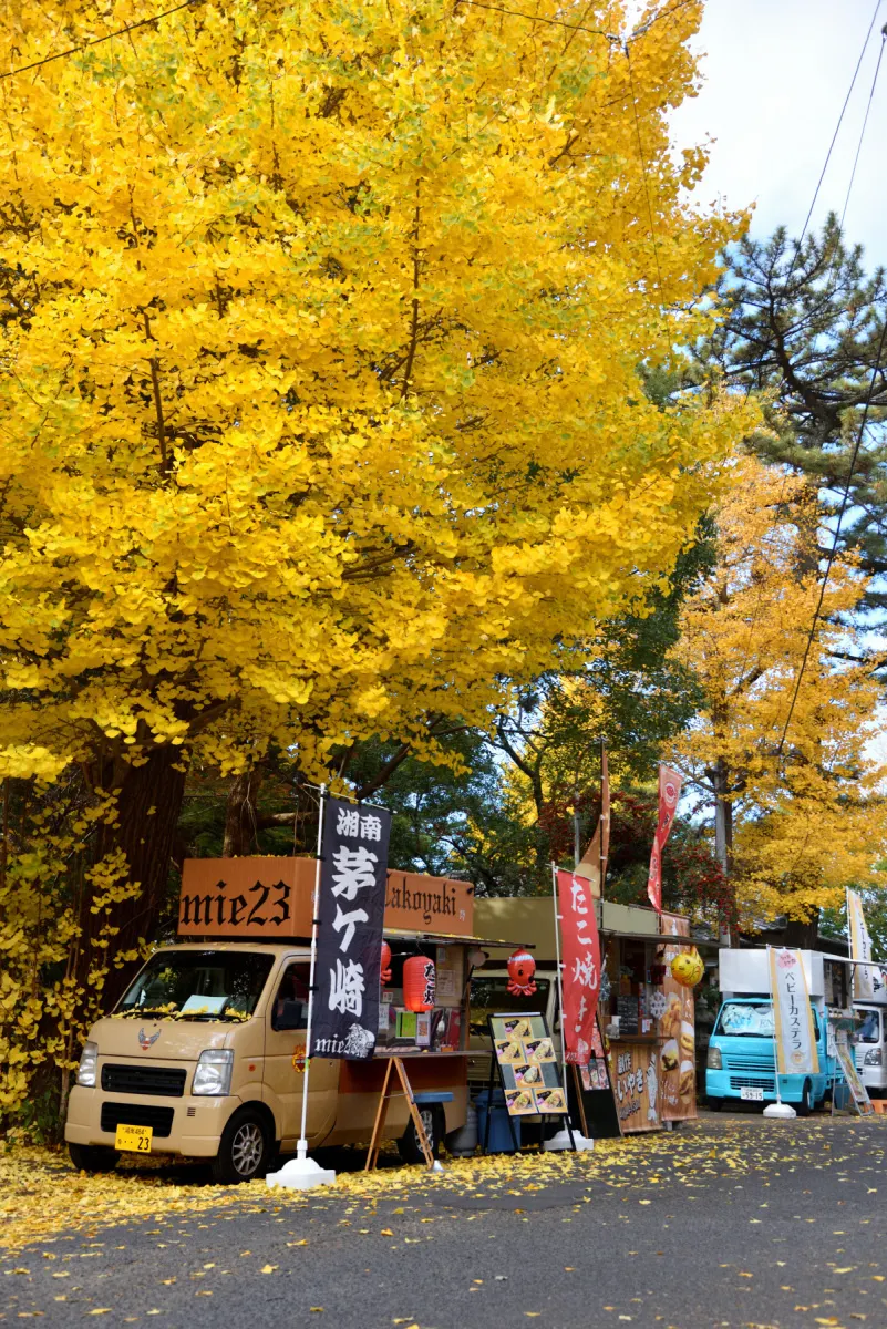 キッチンカーは、1月、7月、9月を除いて、毎月第3土曜日とお正月三が日に来るそうです。黄葉の期間では、11月15日と12月20日にやって来るみたいです。