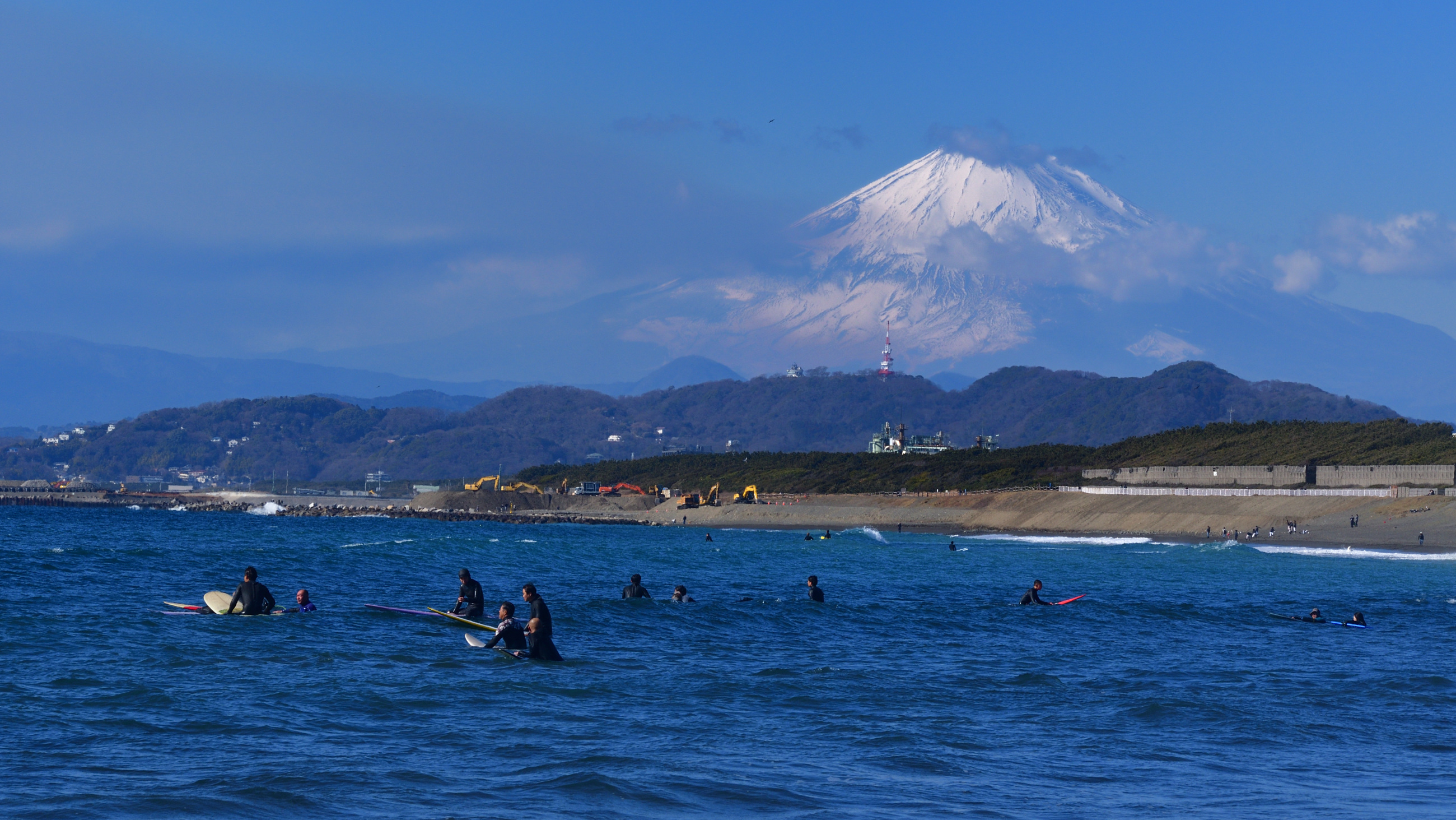 投稿を表示富士は美しく、この気温でサーフィンしているんですか。凄い。