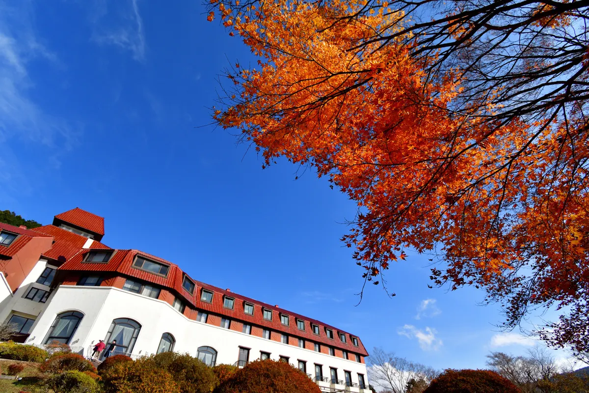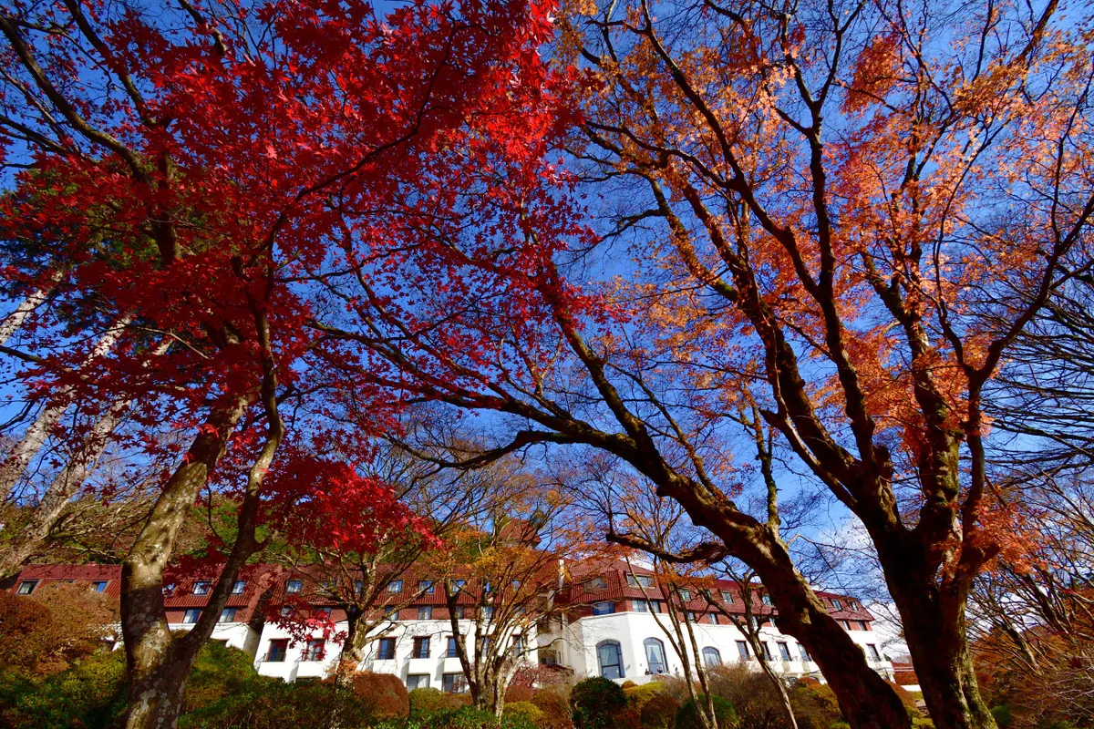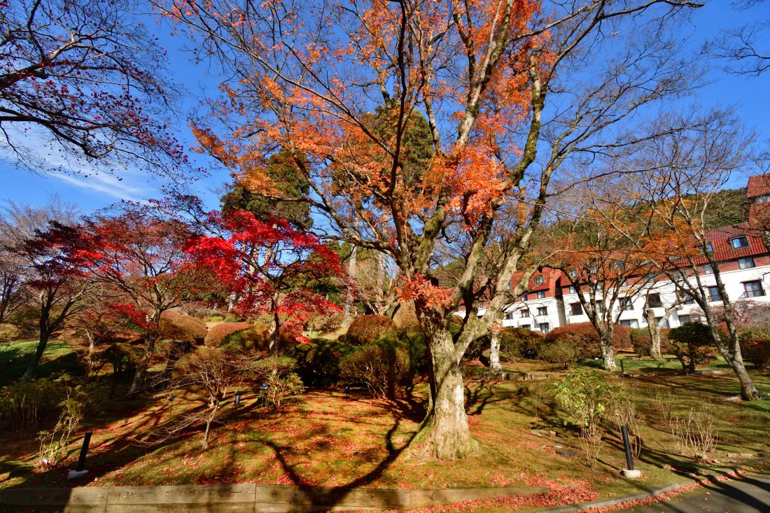 5月には、毎年、箱根の山のホテルに行き楽しんでいるツツジの花ですが、今年は、紅葉を見に行きました。やや出遅れた感じで紅葉も終わりかけでしたが、それでも残っていた美しい赤色に山のホテルの白い姿や、富士山の光景を見る事が出来たのは、とても嬉しい事でした。