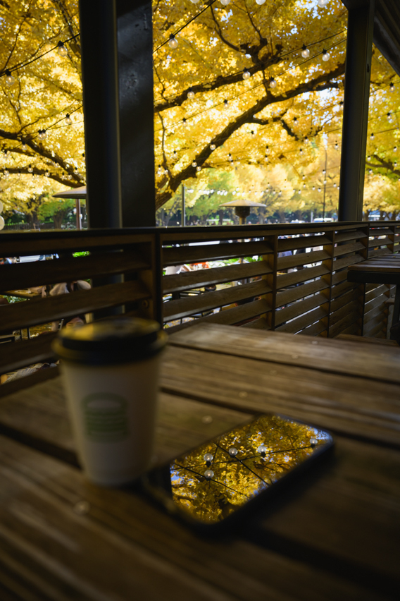 イチョウのもみじが美しくて、洗練された都会の「秋色」ですね。