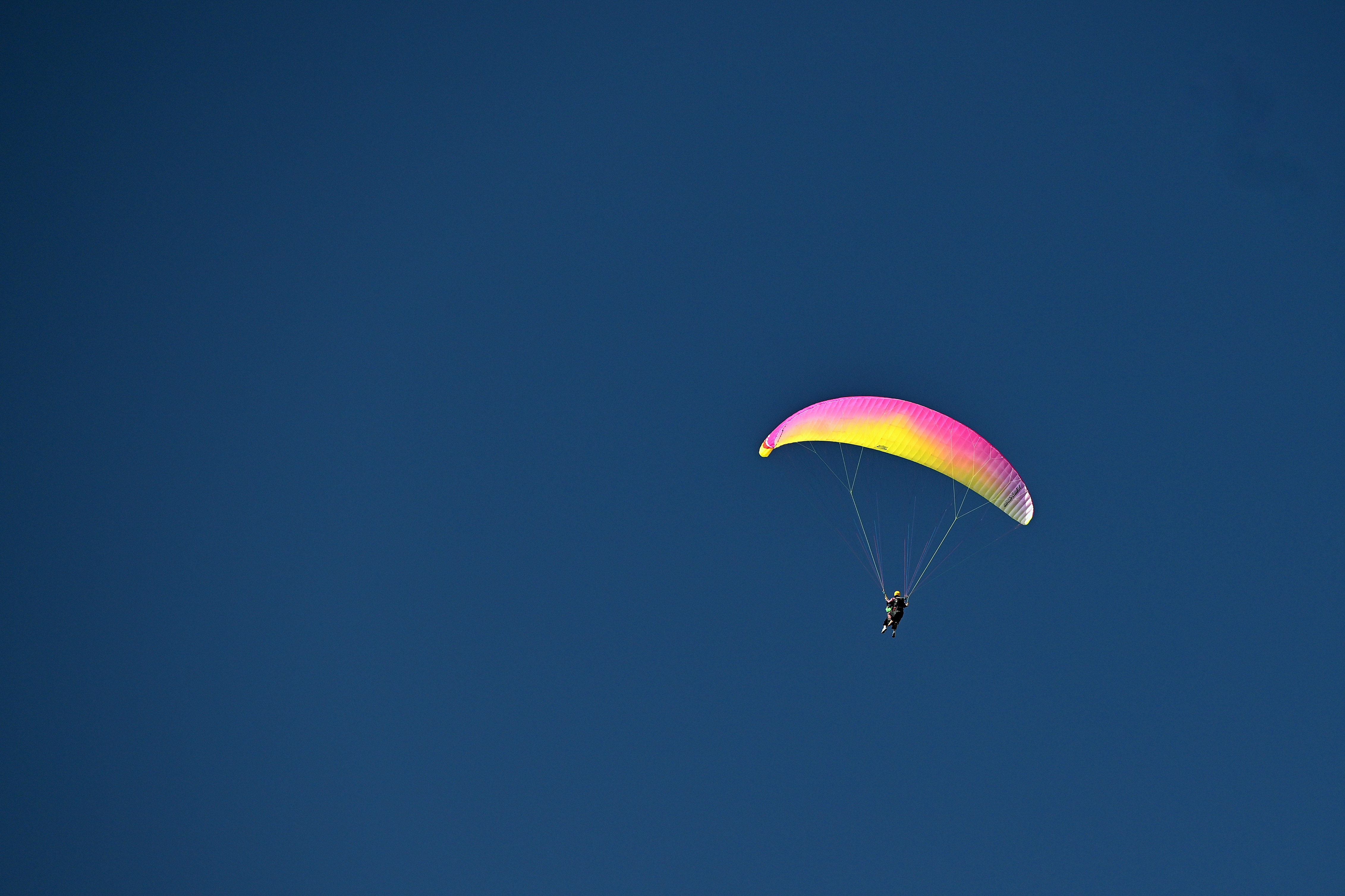 投稿を表示青空に浮かぶビビットなパラグライダー、