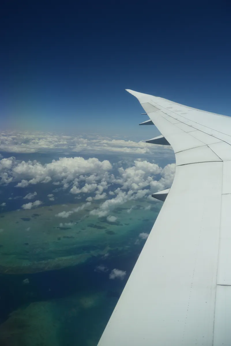ケアンズからのフライトで最初は珊瑚の絶景を眺めながらになります。