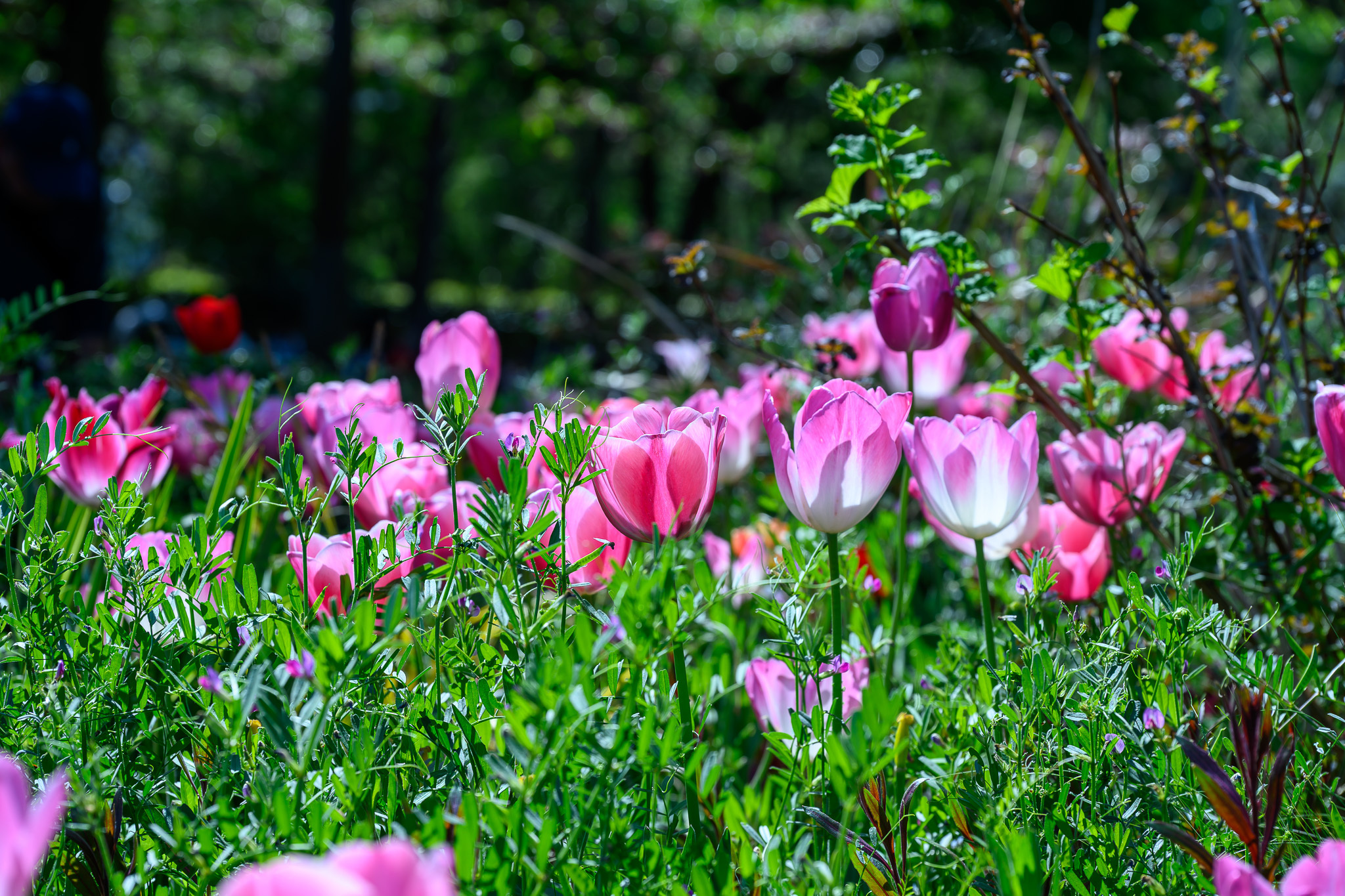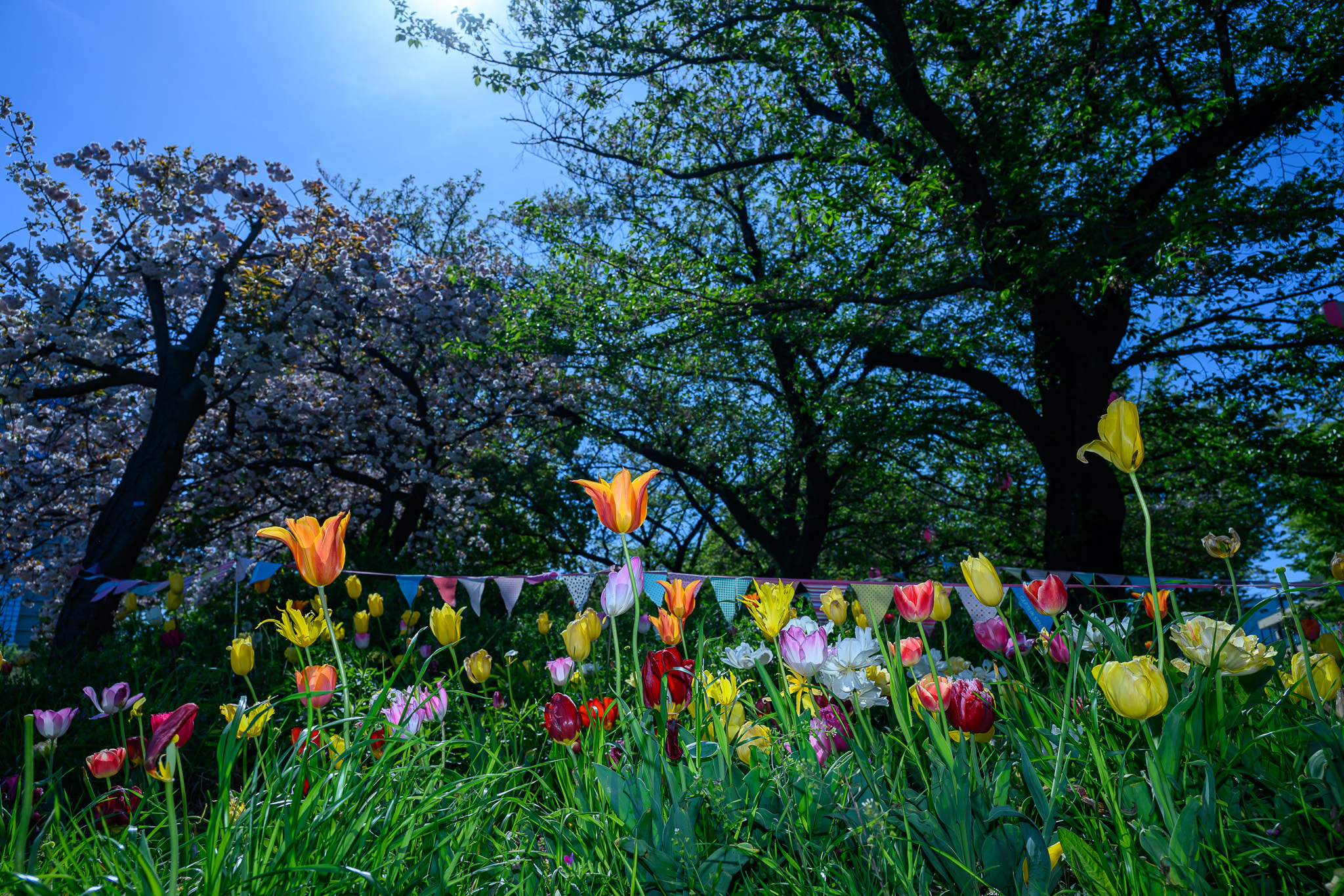 逆光で花びらが透けているチューリップの2点と、その下の若葉の1点は、言われなければわからないほど自然な感じですし、コントラストがよりクッキリとなってカラフルさが際立ってくるものなんですね。