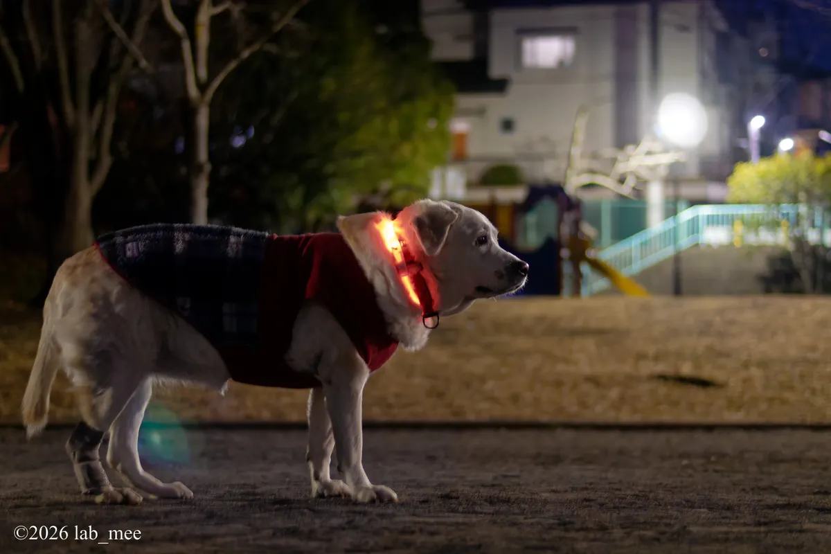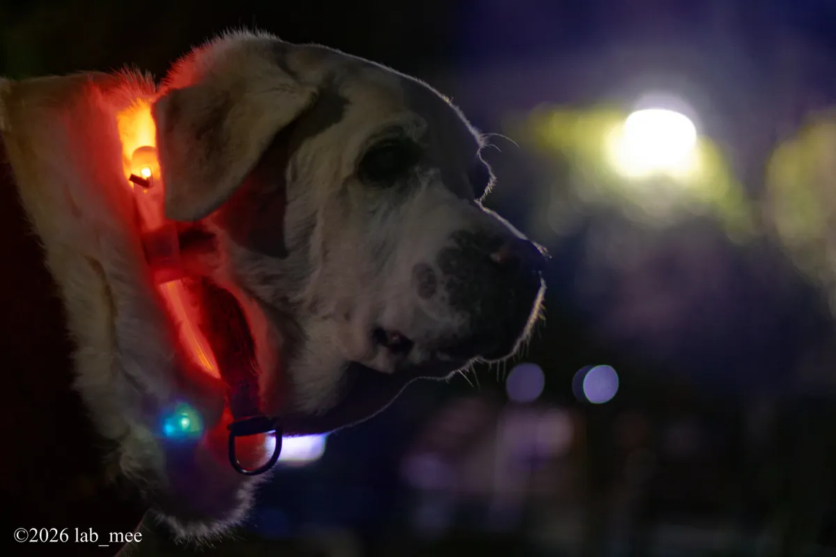 投稿を表示家族の一員のミミちゃん優しい寝顔が最高の癒しですね。夜は、光る首輪なのですね~、初めて見ました。ミミちゃんお大事に。^^