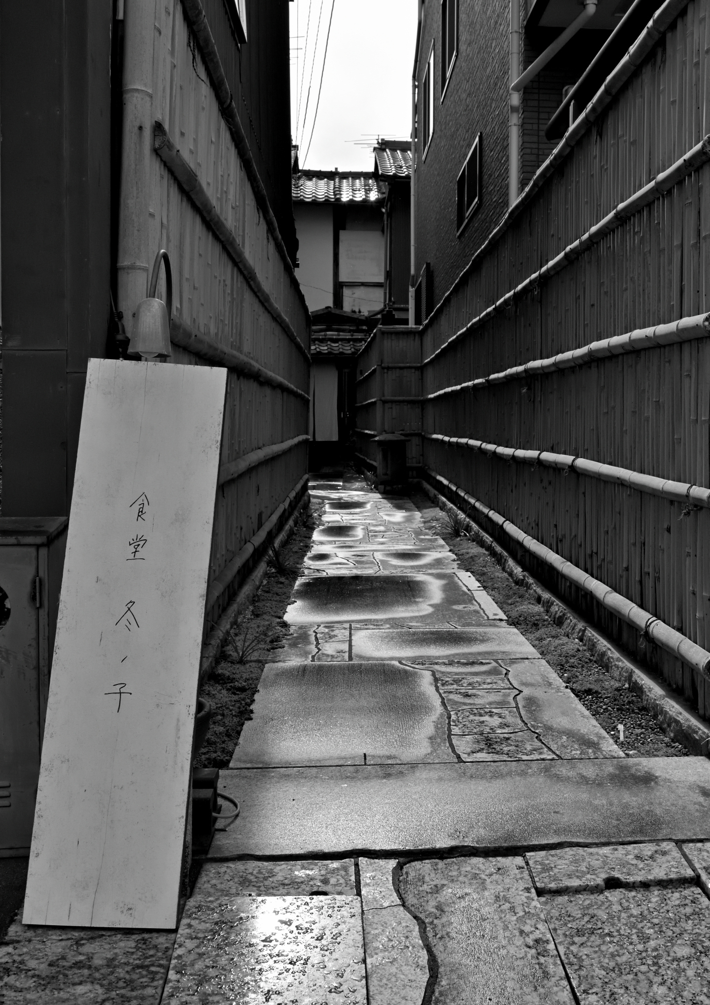 投稿を表示竹を編んだ壁、いかにも京都らしいですね。そこに路地の石畳と窪みに溜まった水たまり。小林旭の「水たまり」の曲が流れて来そうです。いい雰囲気に脱帽。