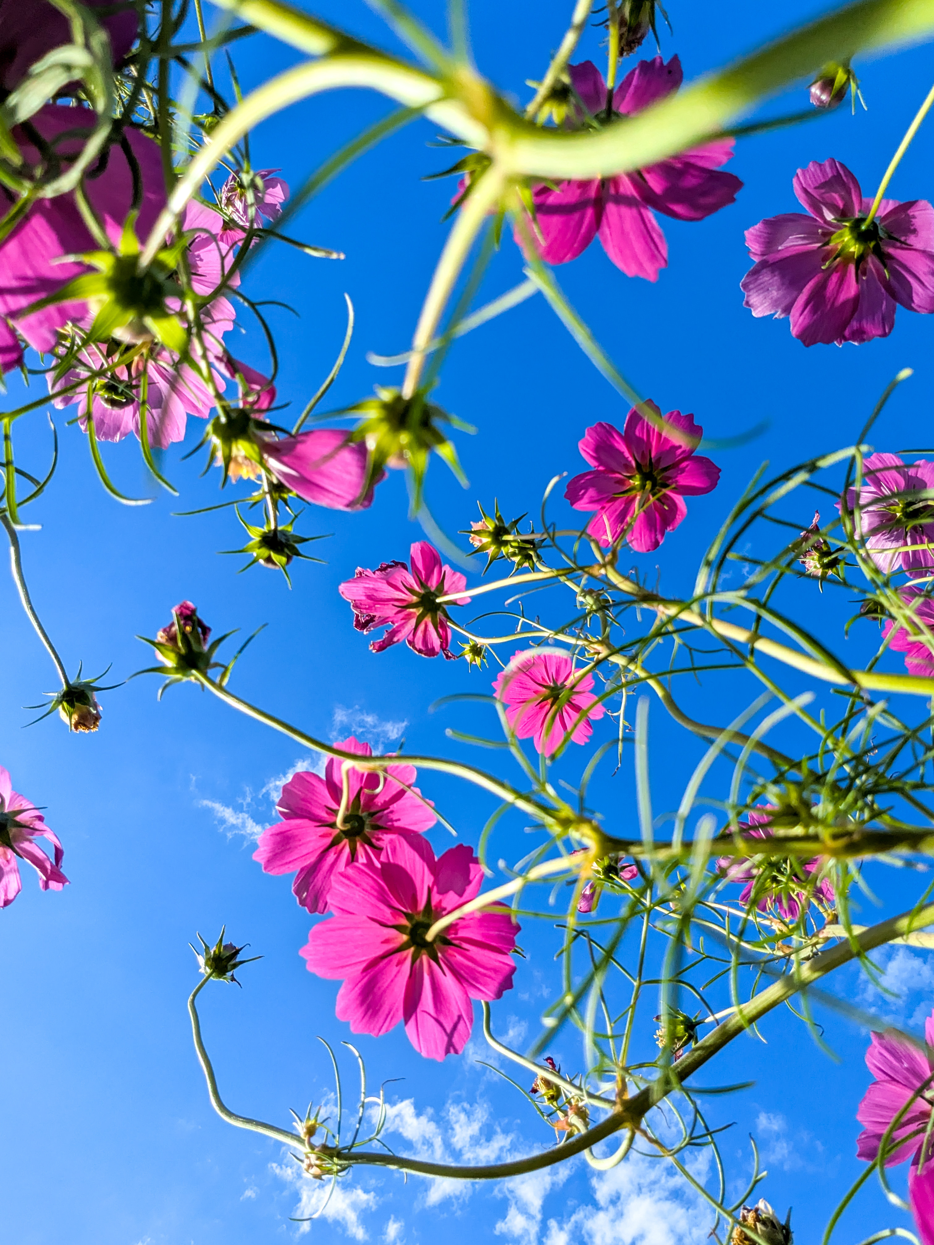 投稿を表示今年、すっきりとした秋晴れが少なかったように思いますが、この作品はピンクのコスモスがくっきりと青空に浮かんで、とても気持ちいいですね!(^^)