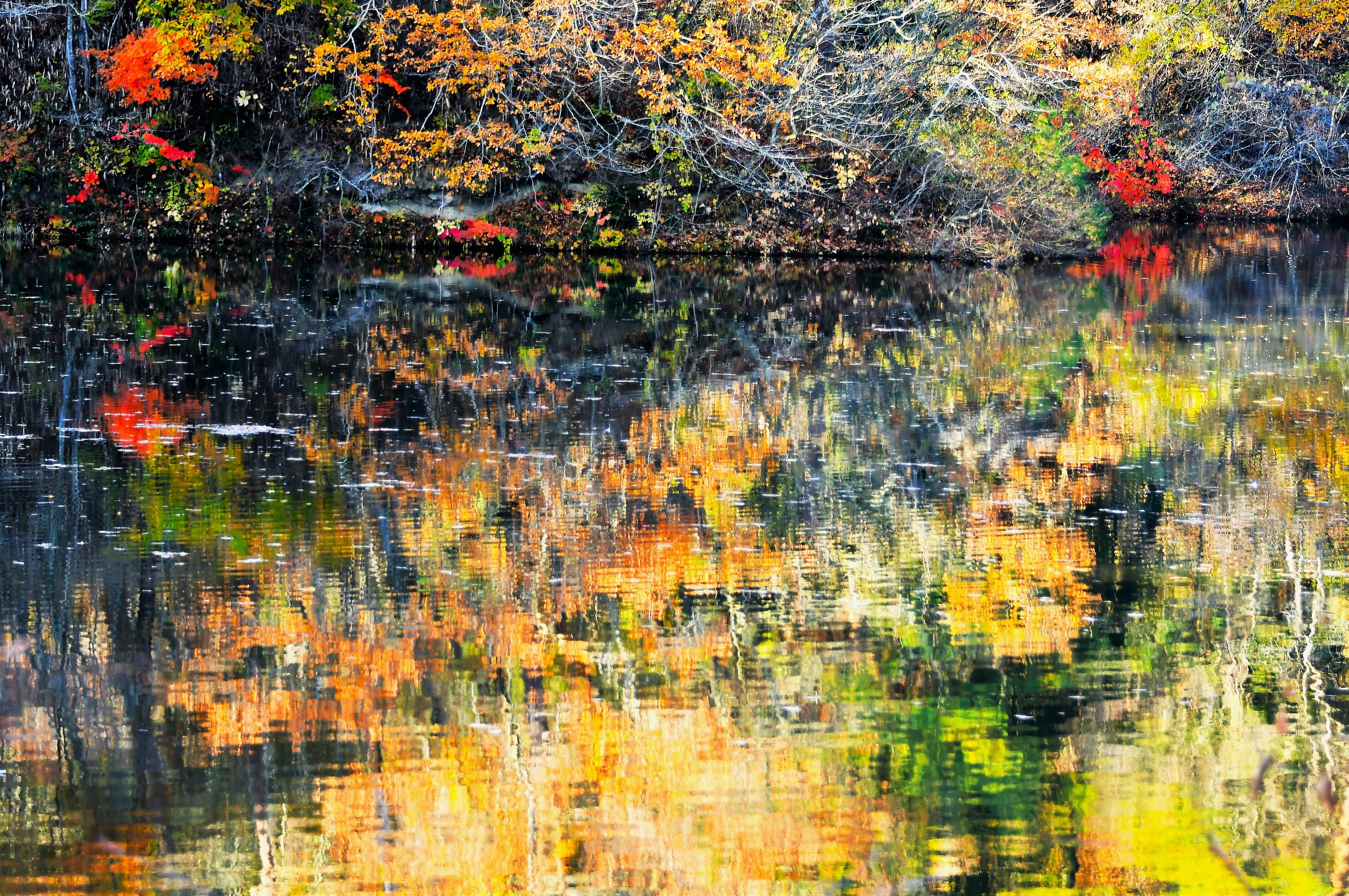 投稿を表示先の投稿では水面のリフレクションは、まだ緑が強い印象でしたが、晩秋明鏡のタイトルにあるとおり、秋がすっかり深まった色合いになりましたね。