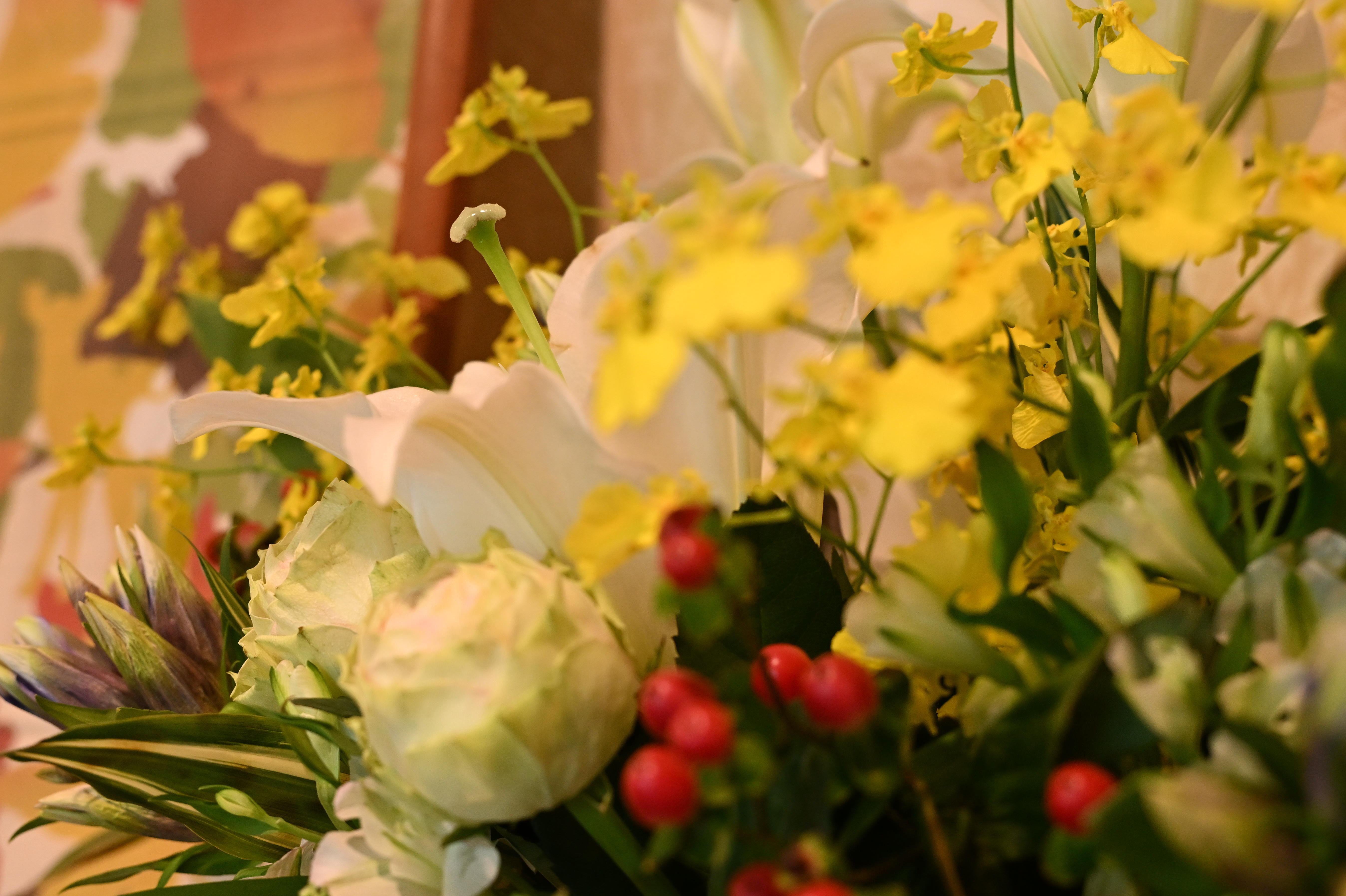 介護施設の花 ユリの大輪 蕊(しべ)合焦