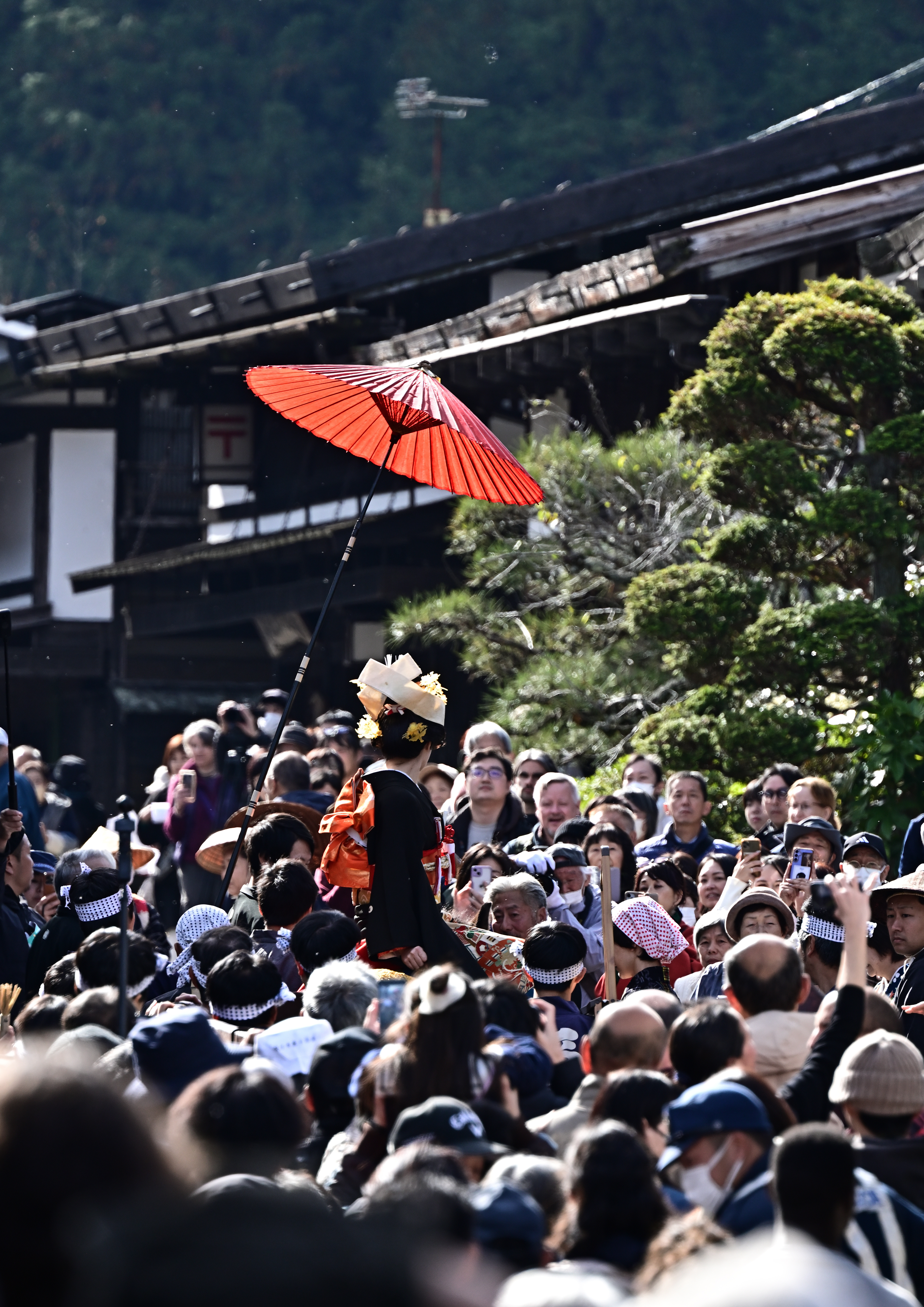 トップ > メンバーズ・フォト > 人物 > 遠い花嫁 滝澤 玄冬 2025/11/24 08:13 遠い花嫁 毎年勤労感謝の日に木曽路妻籠宿で行われる「文化文政風俗絵巻之行列」のメイン「馬に乗せられた花嫁さんの嫁入り道中」です。見ての通りあまりのギャラリーの多さに、正面からの絶好のポジションは諦めました。後方からの苦しいポジションでしたが、傘の赤はよく目立ち、それに引かれ逆光の花嫁さんに小さくても視線誘導されると期待しました。 南木曽町妻籠 江戸時代の時代行列 花嫁の嫁入り道中 後方より いいね 共有する 共有する X facebook LINE リンクをコピー コメントする 1 件の返信 (新着順) ミュートしたユーザーの投稿です。 投稿を表示 滝澤 玄冬 2025/11/24 08:16 作品データの追加です。失礼いたしました。 Nikon Z7 NIKKOR Z 100-400mm f/4.5-5.6 F/8 1/400秒 マイナス0.3補正 いいね 返信する