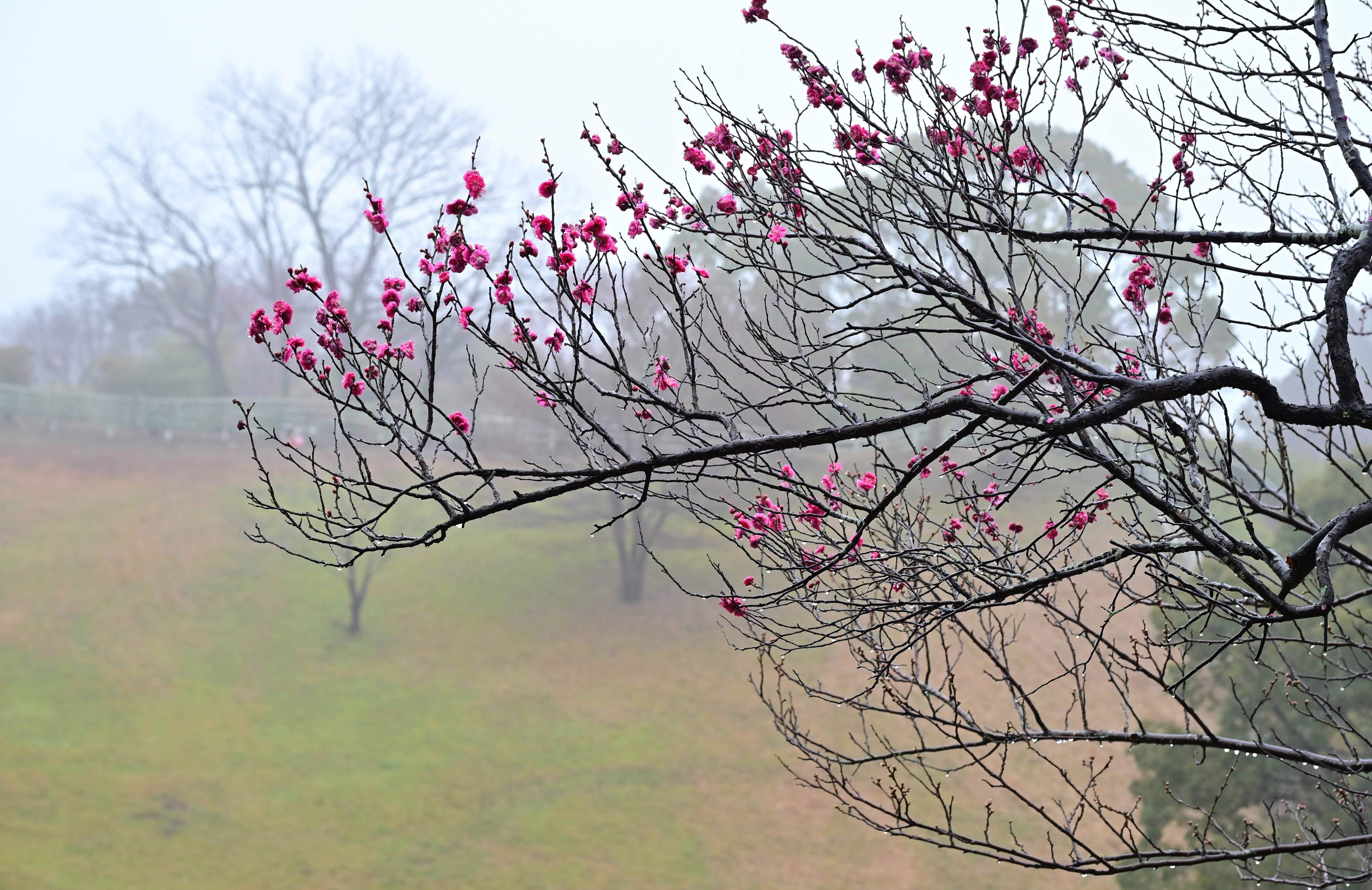 投稿を表示霞んだ背景に浮かぶ紅梅の姿、枝ぶりが美しいですね~。^^