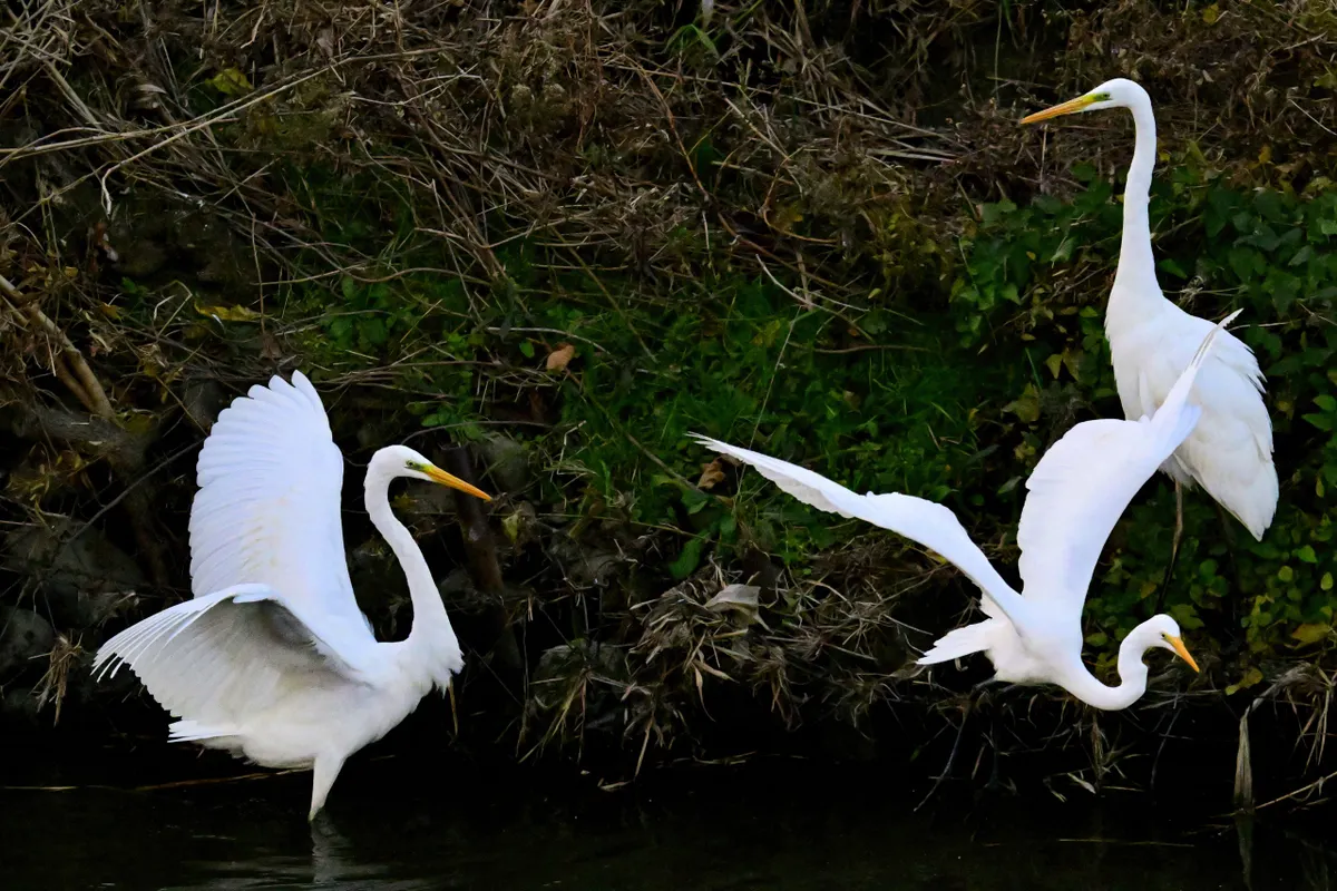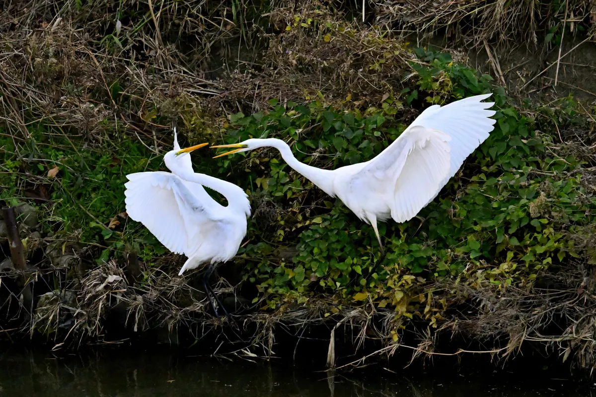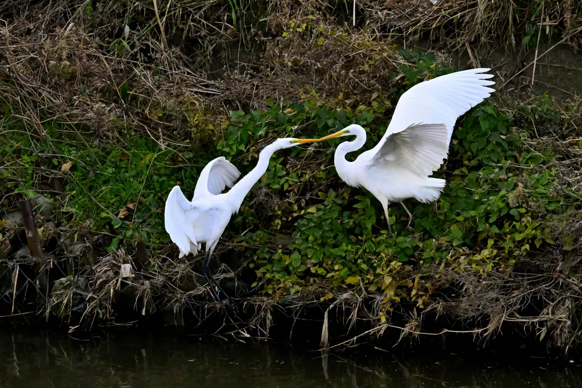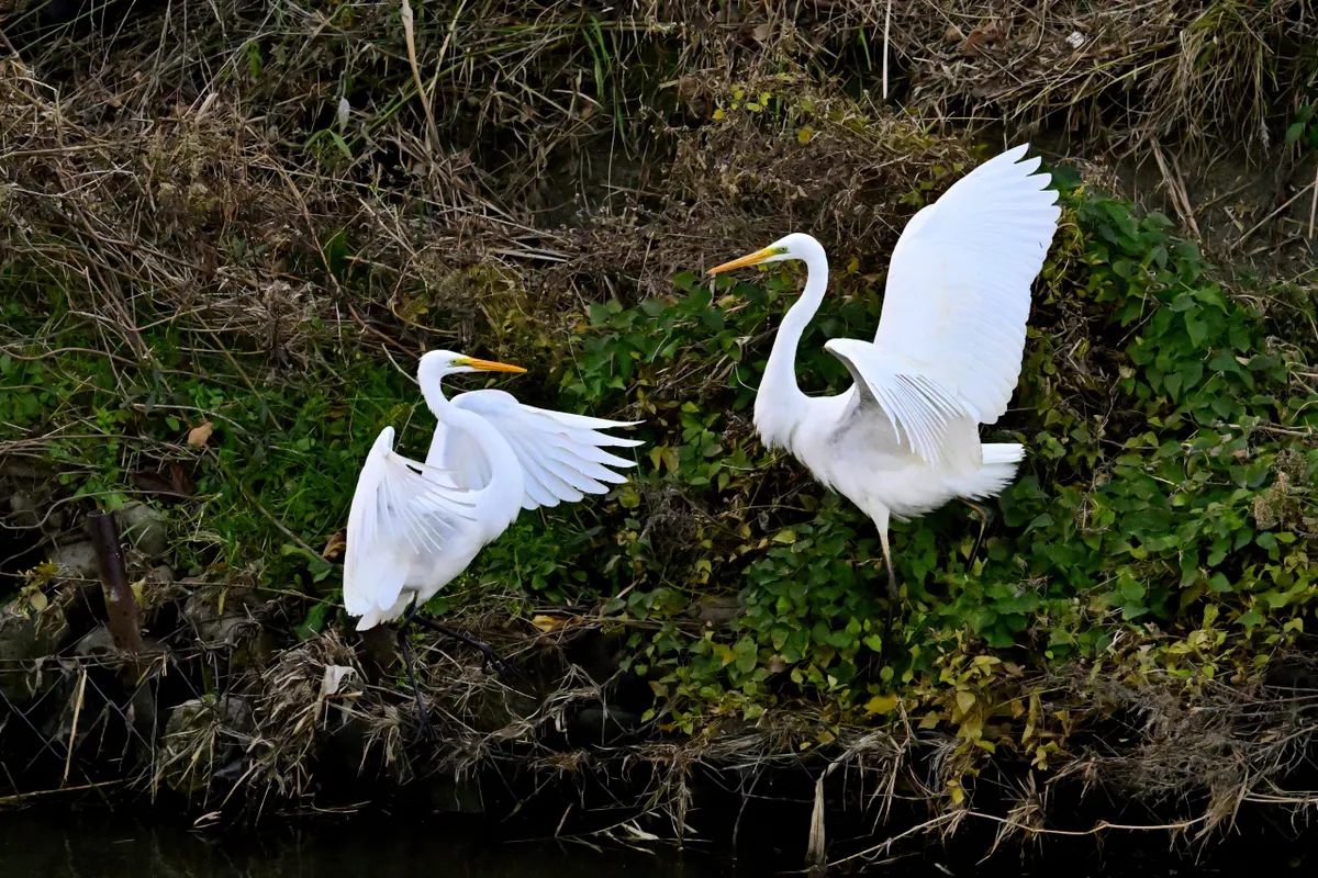 トップ > メンバーズ・フォト > 自然風景 > 小競り合い kkzzkk 2025/12/14 09:03 小競り合い サギ類などの大集団を見ていたら、小競り合いをしている二羽を発見。ダイサギはクビを伸ばしてエサを捕りますが、闘争もやっぱりクビを伸ばして突き合うんですね。最後は、横から飛んできた三羽目に右側のダイサギが追い払われました。 <撮影データ>・Z 8・Z 100-400mm f/4.5-5.6 VR S(DXクロップ)・f/5.6・ISOオート(ISO6400)・現像:NX Studio(以下、上から順番に)・1/6400秒・1/6400秒・1/6400秒・1/8000秒・1/6400秒・1/13000秒 いいね 共有する 共有する X facebook LINE リンクをコピー コメントする 1 件の返信 (新着順) ミュートしたユーザーの投稿です。 投稿を表示 Hachiro 2025/12/14 09:53 ひどい時は首をくわえて水中で窒息させようとするので、とうとう撮影をやめて助けに入ったこともあります。どちらかが退散してくれたら終わりですが、気の強いものどおしは1時間でもやりますから、危ないです。 いいね 返信する ミュートしたユーザーの投稿です。 投稿を表示 kkzzkk 2025/12/14 11:57 Hachiro Hachiroさん、 「いいね」とコメント、ありがとうございます。 そうなんですか。いやぁ、かなり凶暴ですね。そうですか、救助に入られたのですね。お人柄が分かります! いいね 返信する