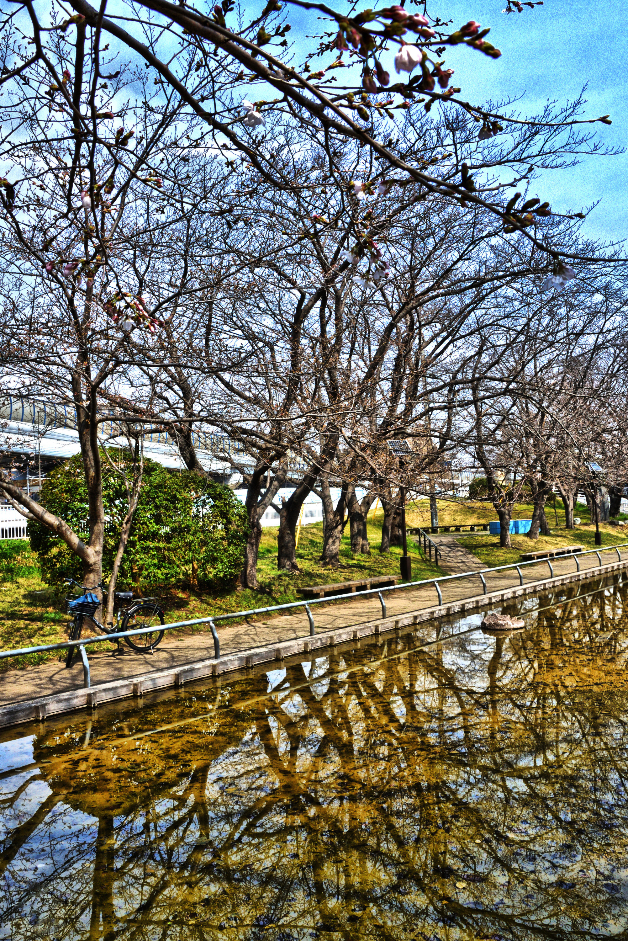 3月22日に撮影した鎌倉時代に相模川に架けられた旧相模川橋脚保存場所での光景です。ここも桜の開花は少しだけです。去年と同じく、今週末が見ごろになるのだと思います。