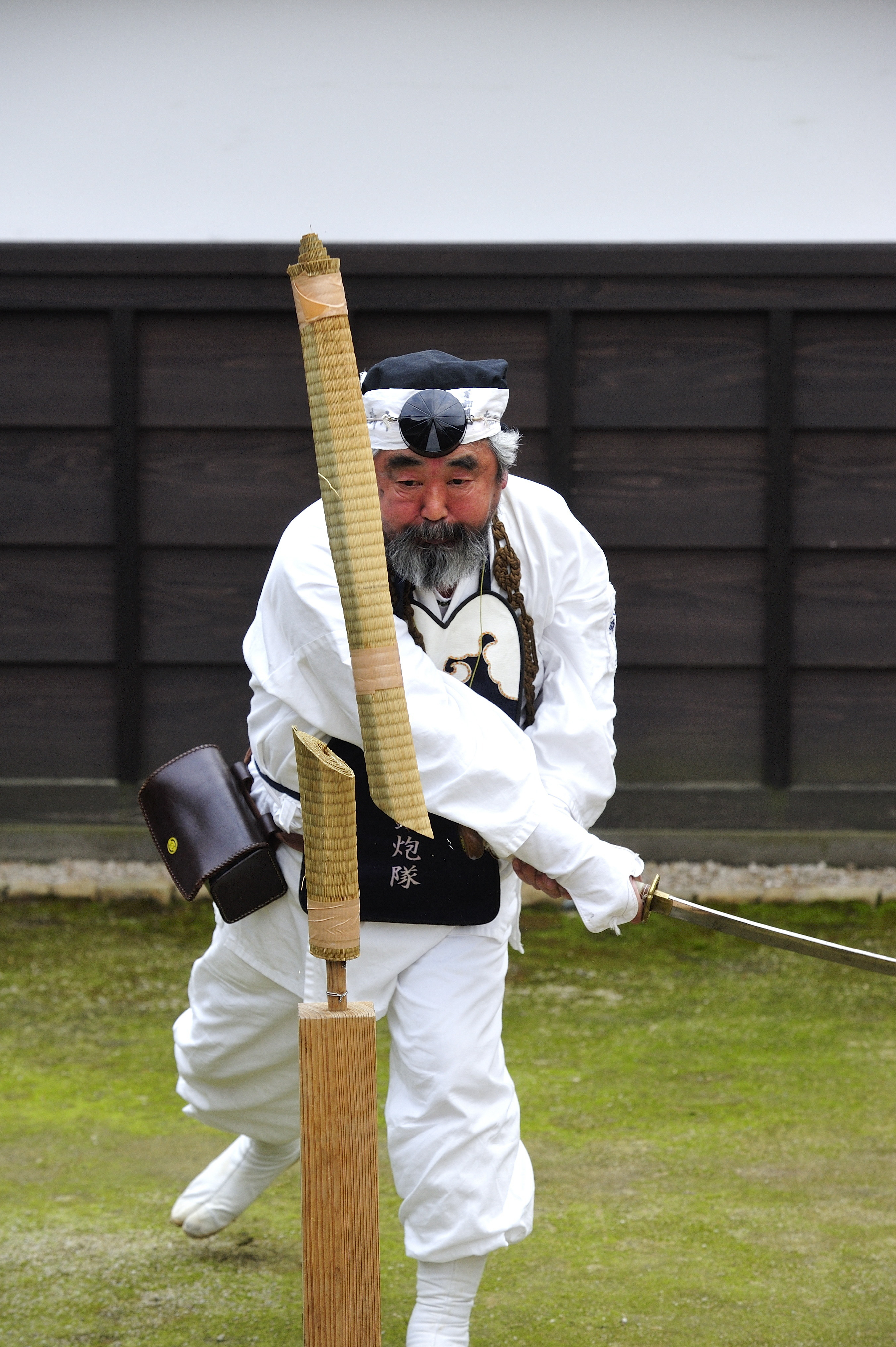 投稿を表示服装からして、鉄砲隊の隊員でもある伝統行事を保存する会のかたでしょうか。簡単なようで日本刀での斬りはむずかしいです。見事に切られた瞬間を写し止められましたね。