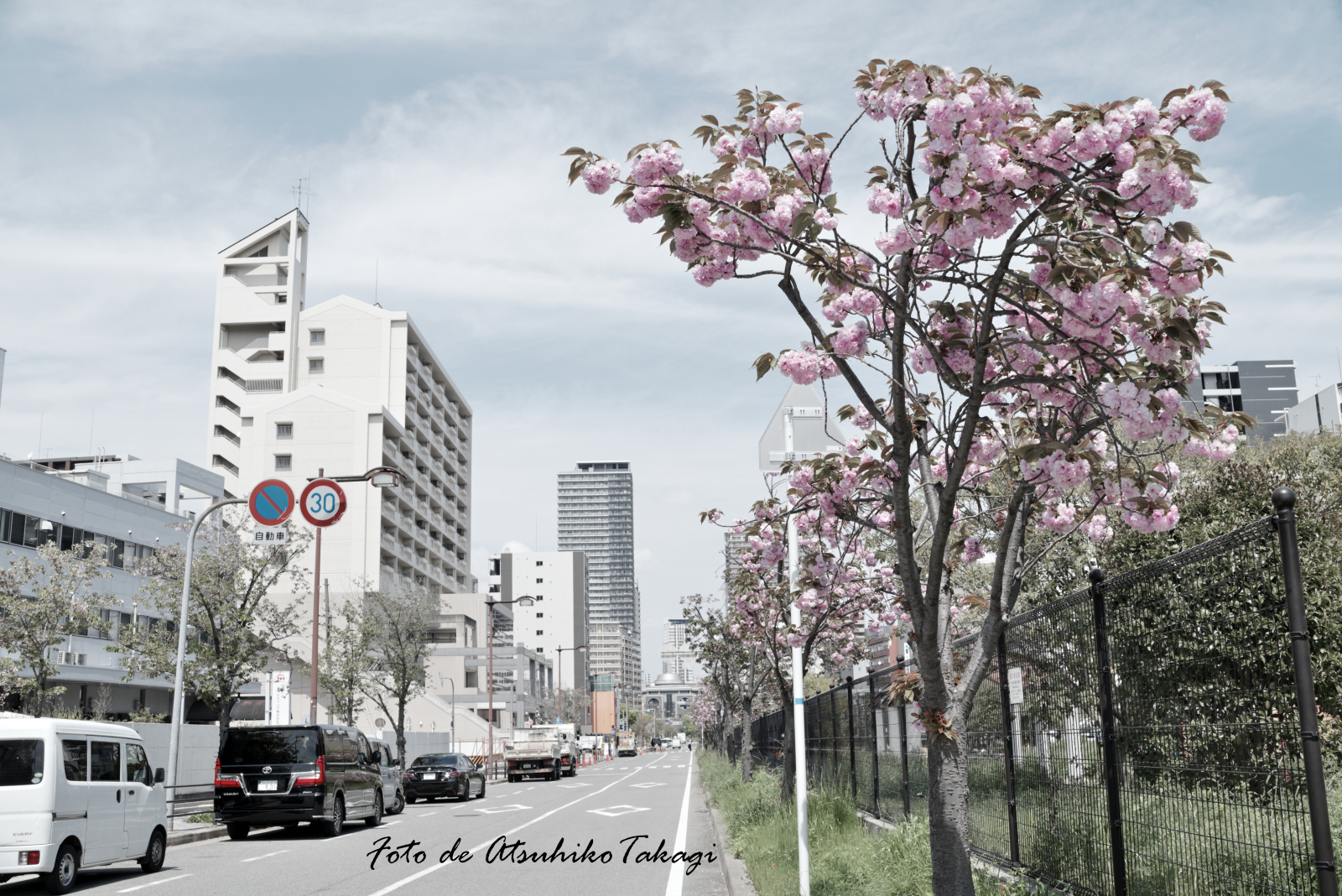 アイキャッチ画像の場所(右側)は、JR難波駅(旧湊町駅)の南側へ少し下ったところにある難波塩草敷津公園で、細長い公園沿いに八重桜が植樹されていました。(この公園の地下をJRが走っていています)撮影:4/14(火)です。