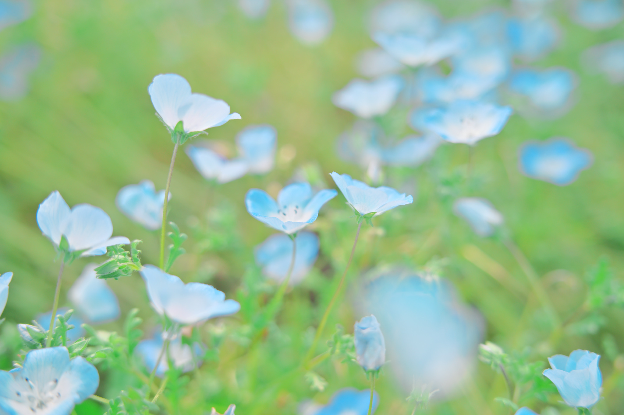肖像権の関係で、モデルさんが写った写真をSNS等で公開することができないので、撮影会終了後に、花の丘で撮ったネモフィラの写真をご紹介します。