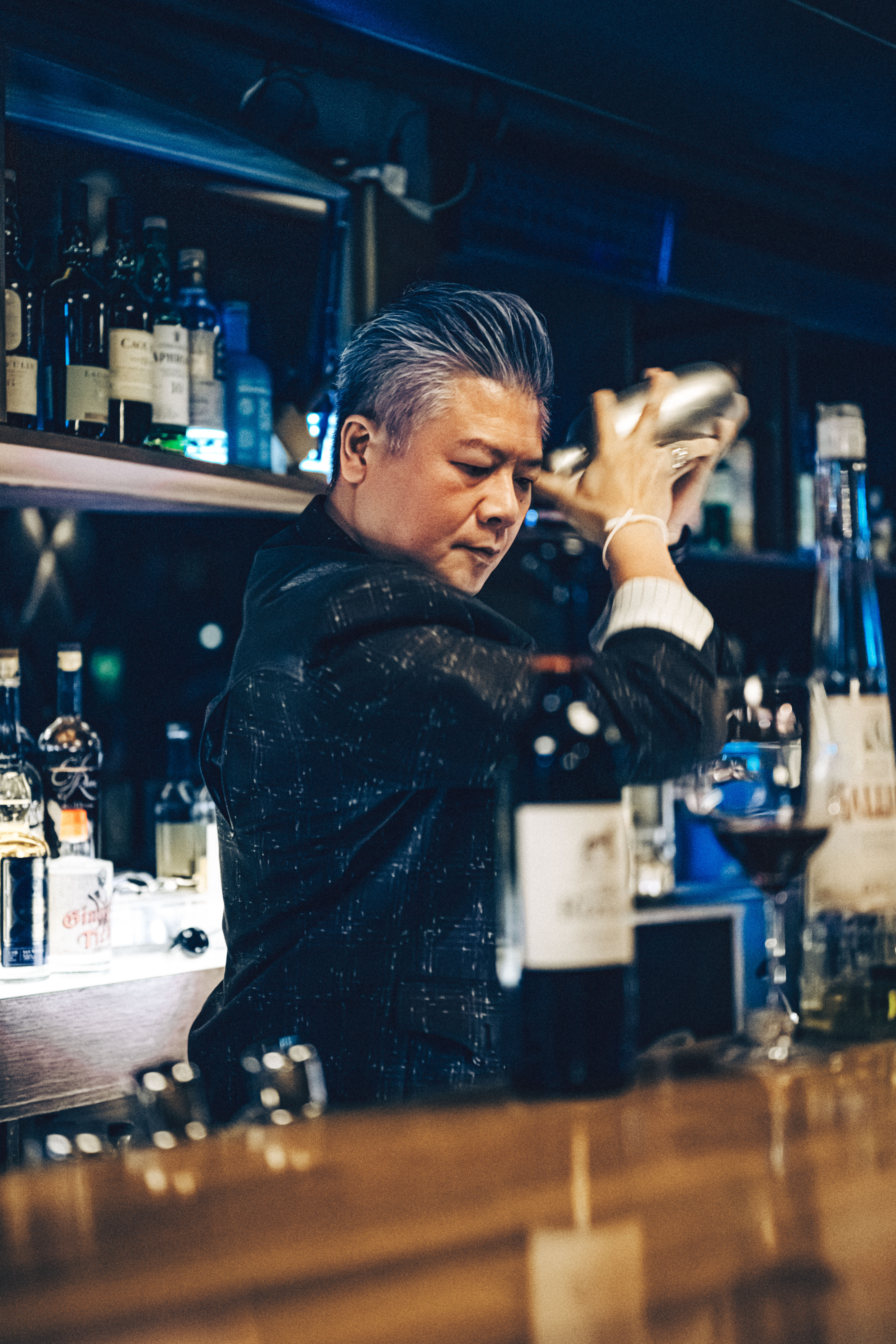 台北のバー、真剣な眼差しでシェイカーを振るCoolなラオパン(老板=社長・店主)。カクテル美味かったぜ!