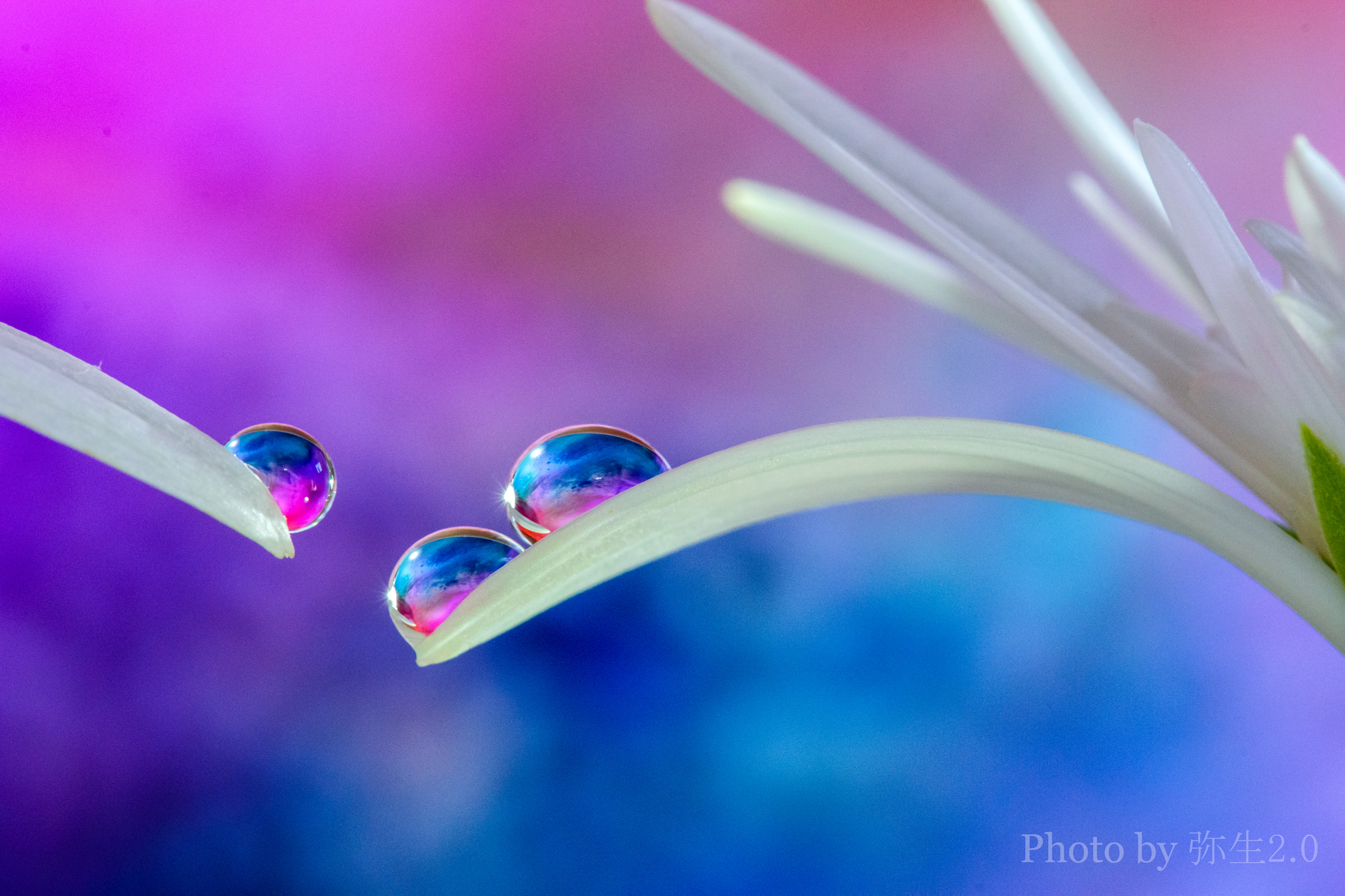こんなにまんまるの水滴を作って、花びらに載せるのも大変そうですね。