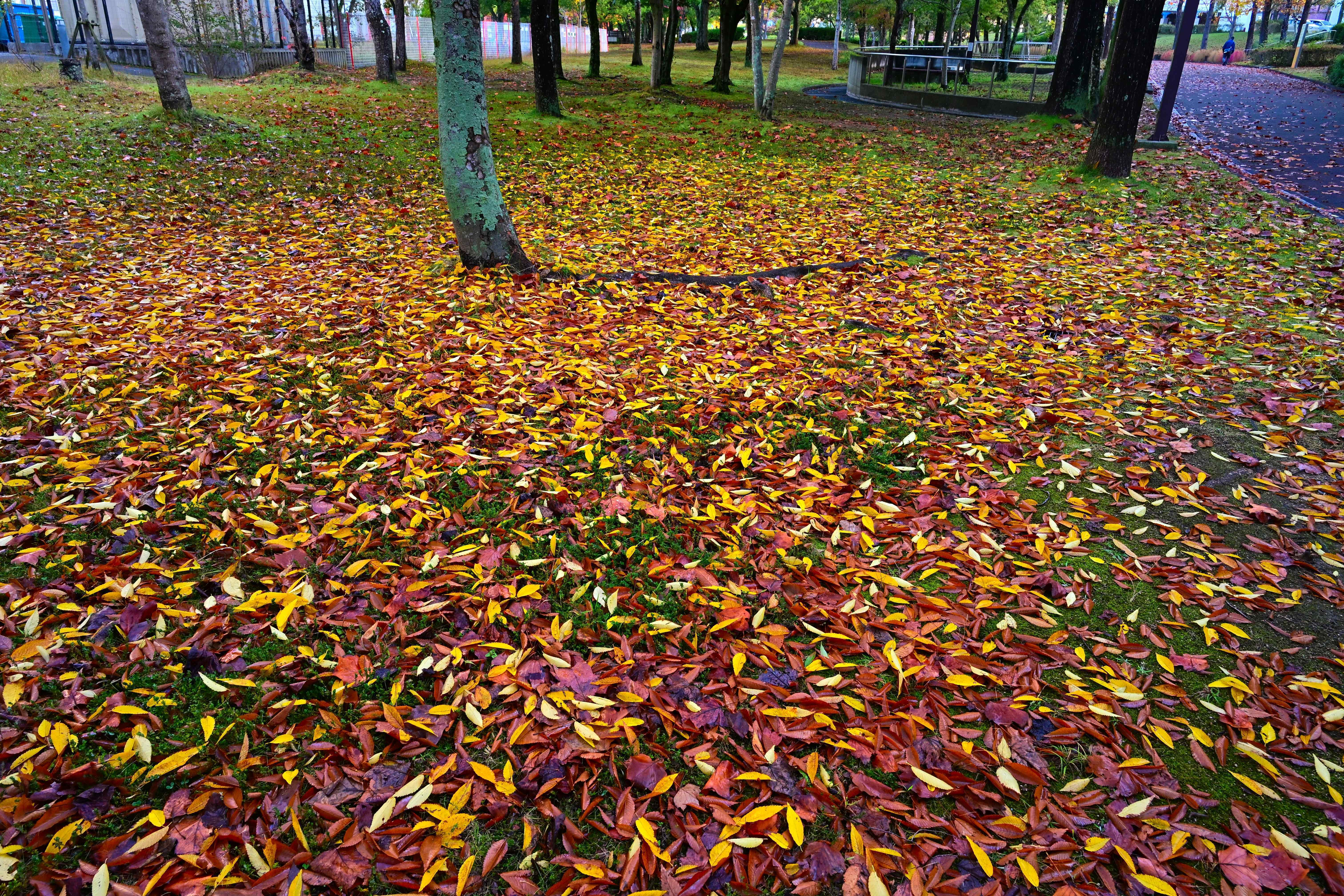 地に降り積もった落ち葉は眩しく感じるくらいに鮮やかなので、Hachiroさんがそこにカメラを向けた気持ちが伝わります。