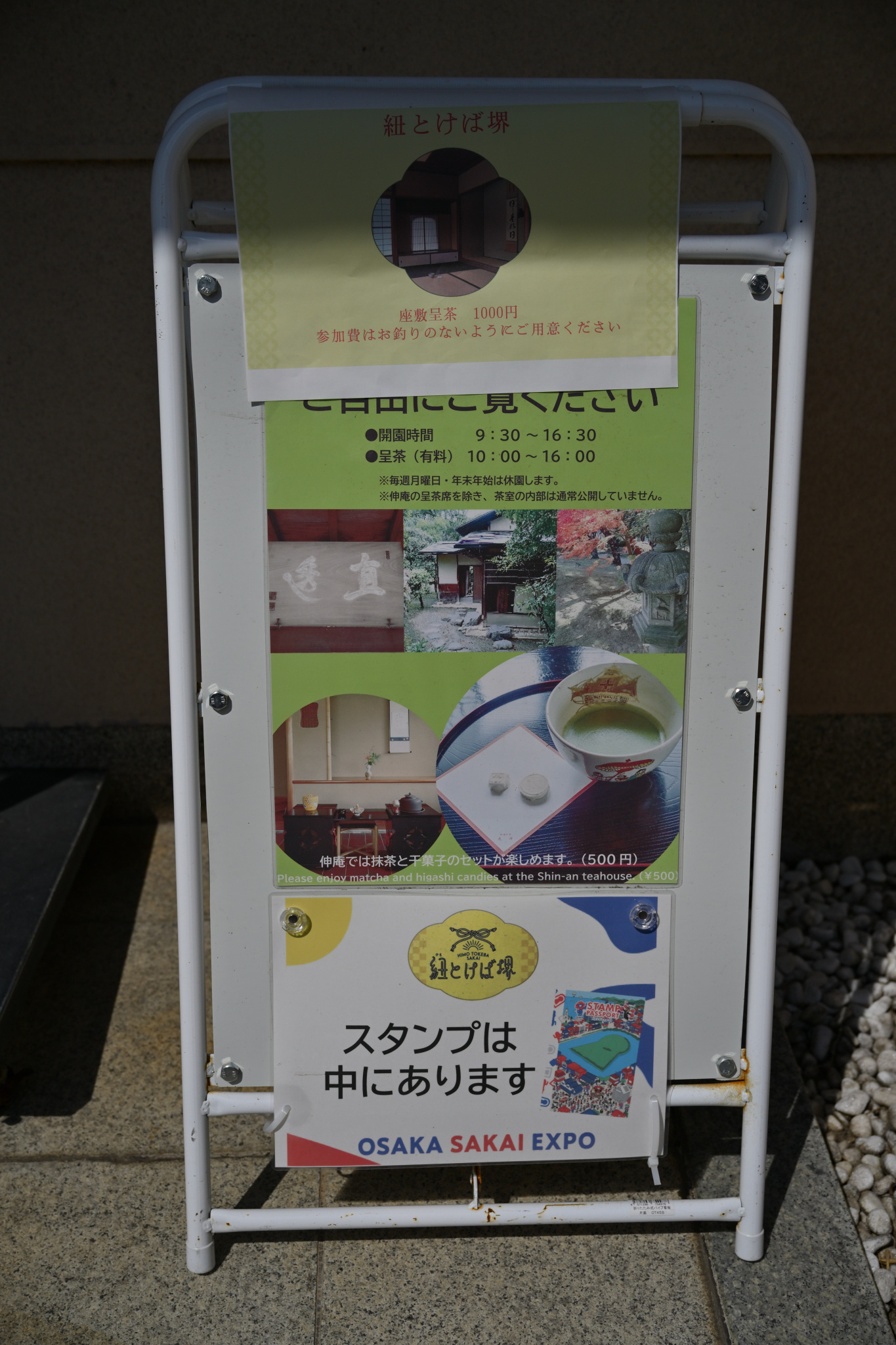 その3は、いよいよメインディシュの登場です。大仙公園に着いて最初に向かったのは、茶室「伸庵」です。まずは、席の確保!