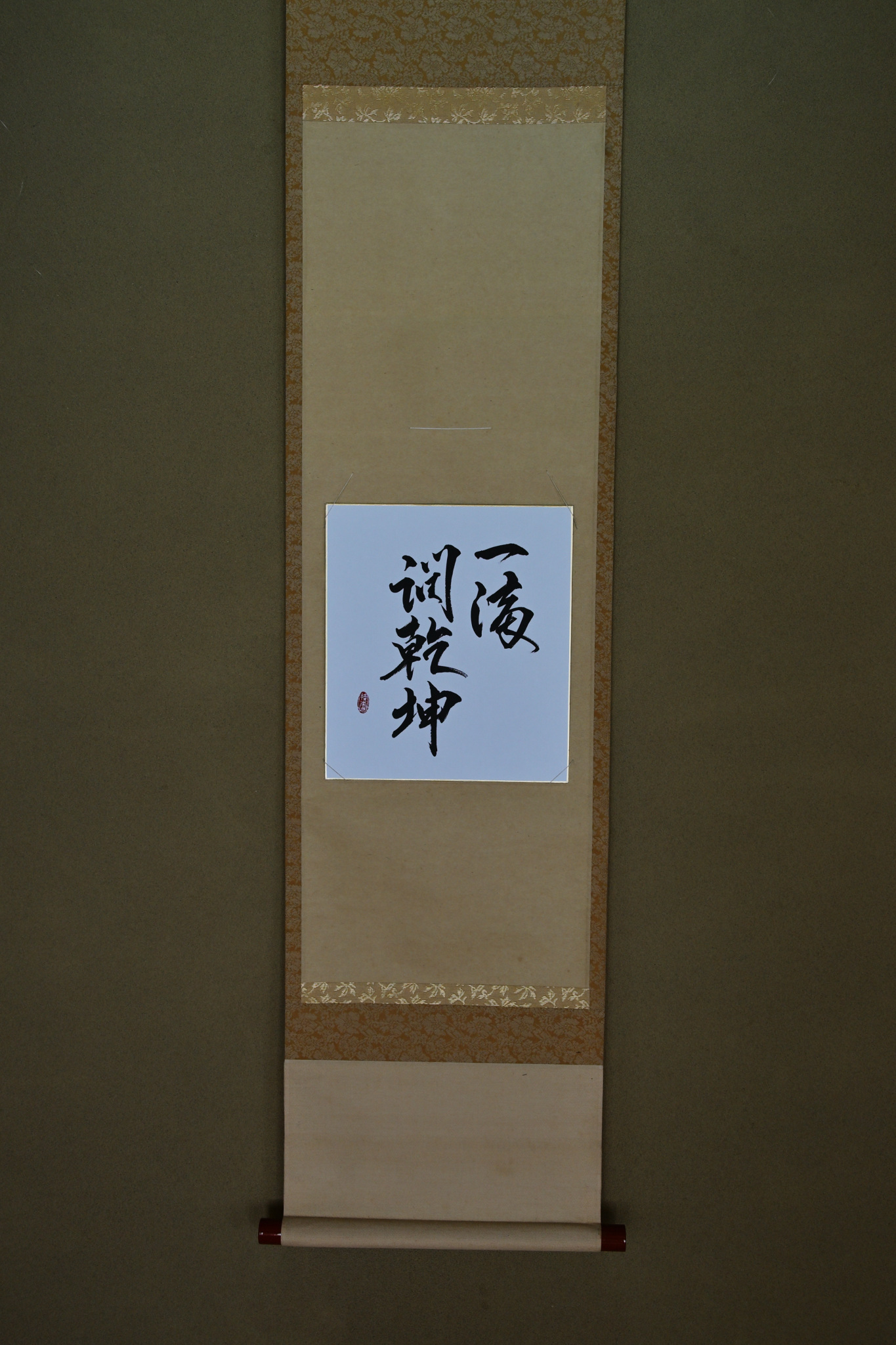 まずは、掛け軸です。「一滴潤乾坤(いってきけんこんをうるおす)」と書いてあります。