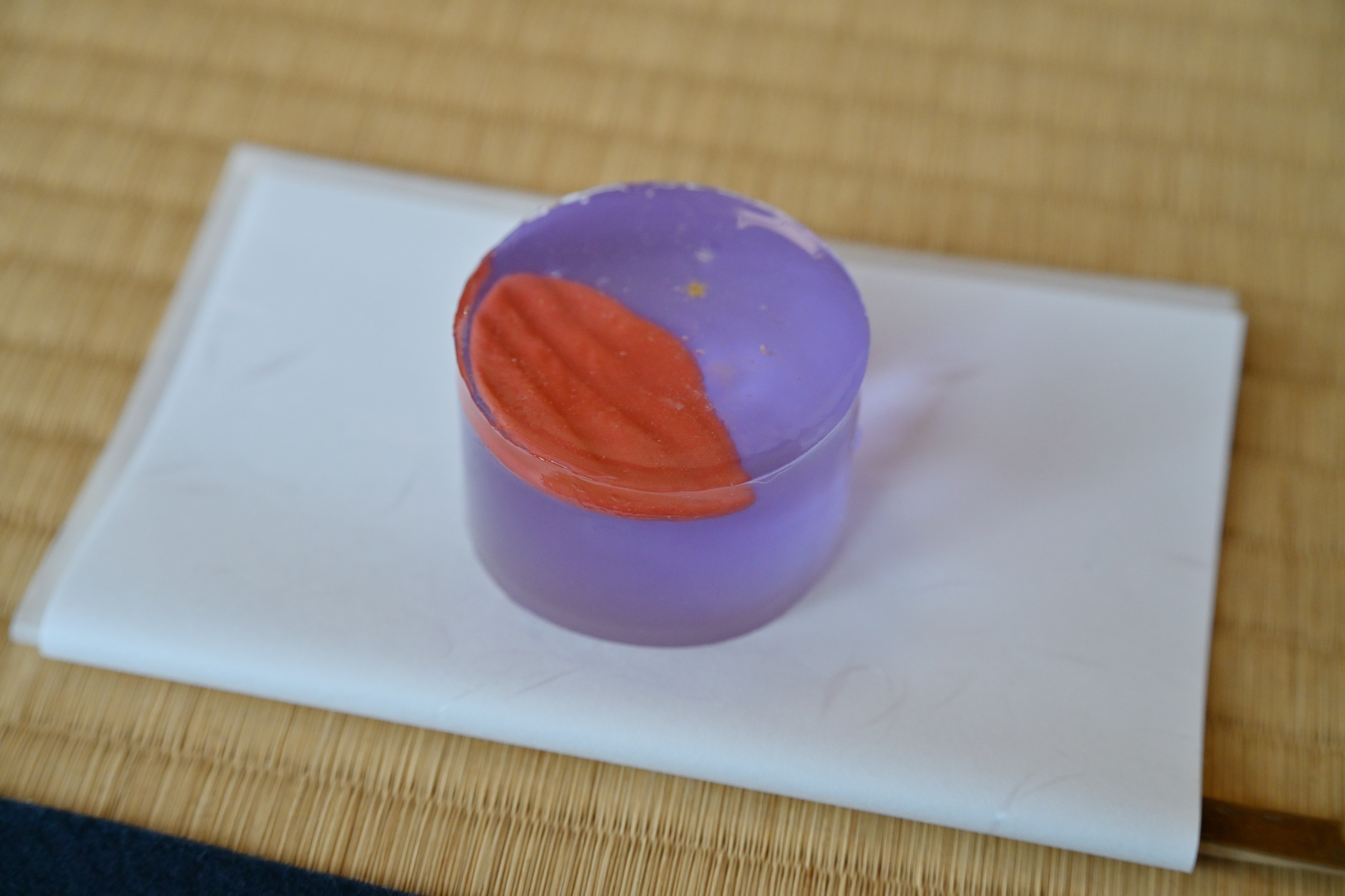 そして、こちらがヨルダンパビリオンの砂漠空間をイメージして特別に制作された主菓子です(ゼリーでした)。