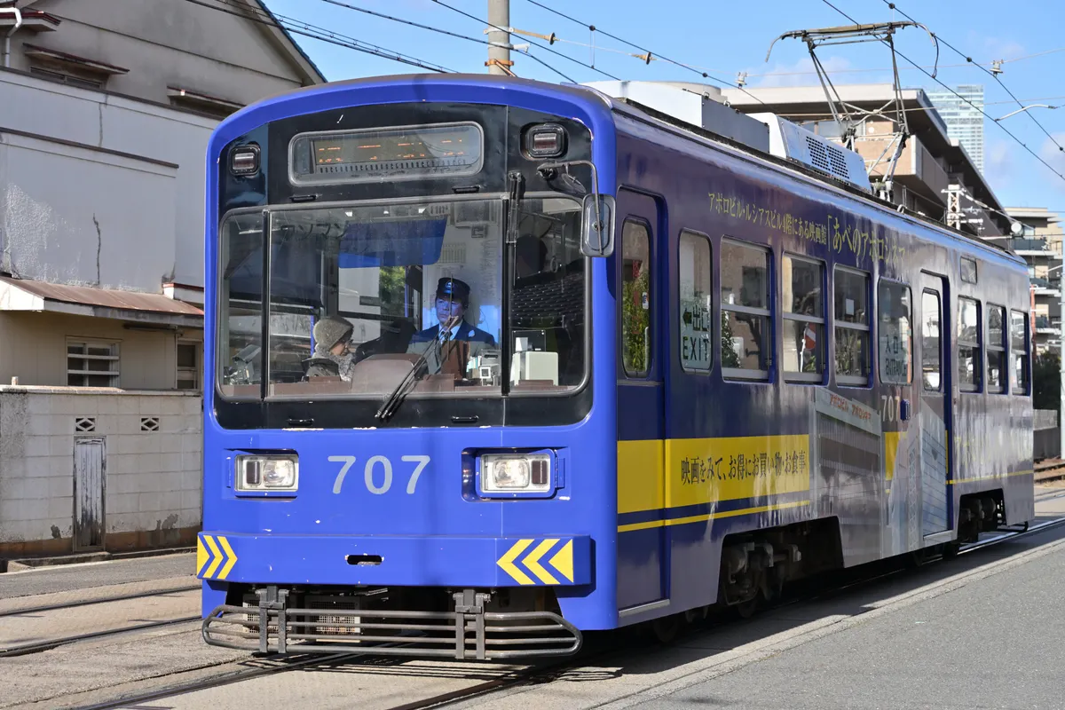 家のすぐそばをチン電(阪堺電車)が走っていて、よく撮影されてる方が居るので、今年の撮り初めは、これにしよう!と思い立って、先ほど撮って来ました。