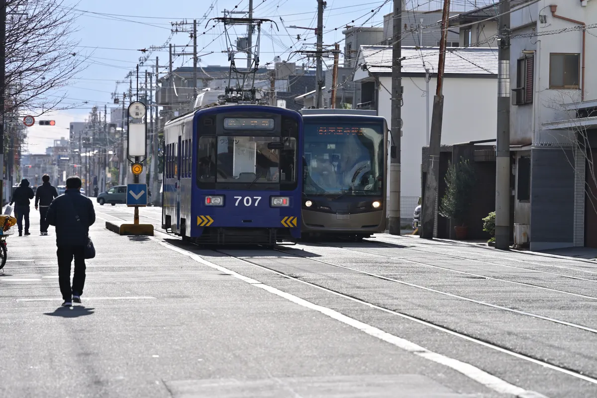 アイキャッチ画像は、路面電車が交差する瞬間を捉えたものです。