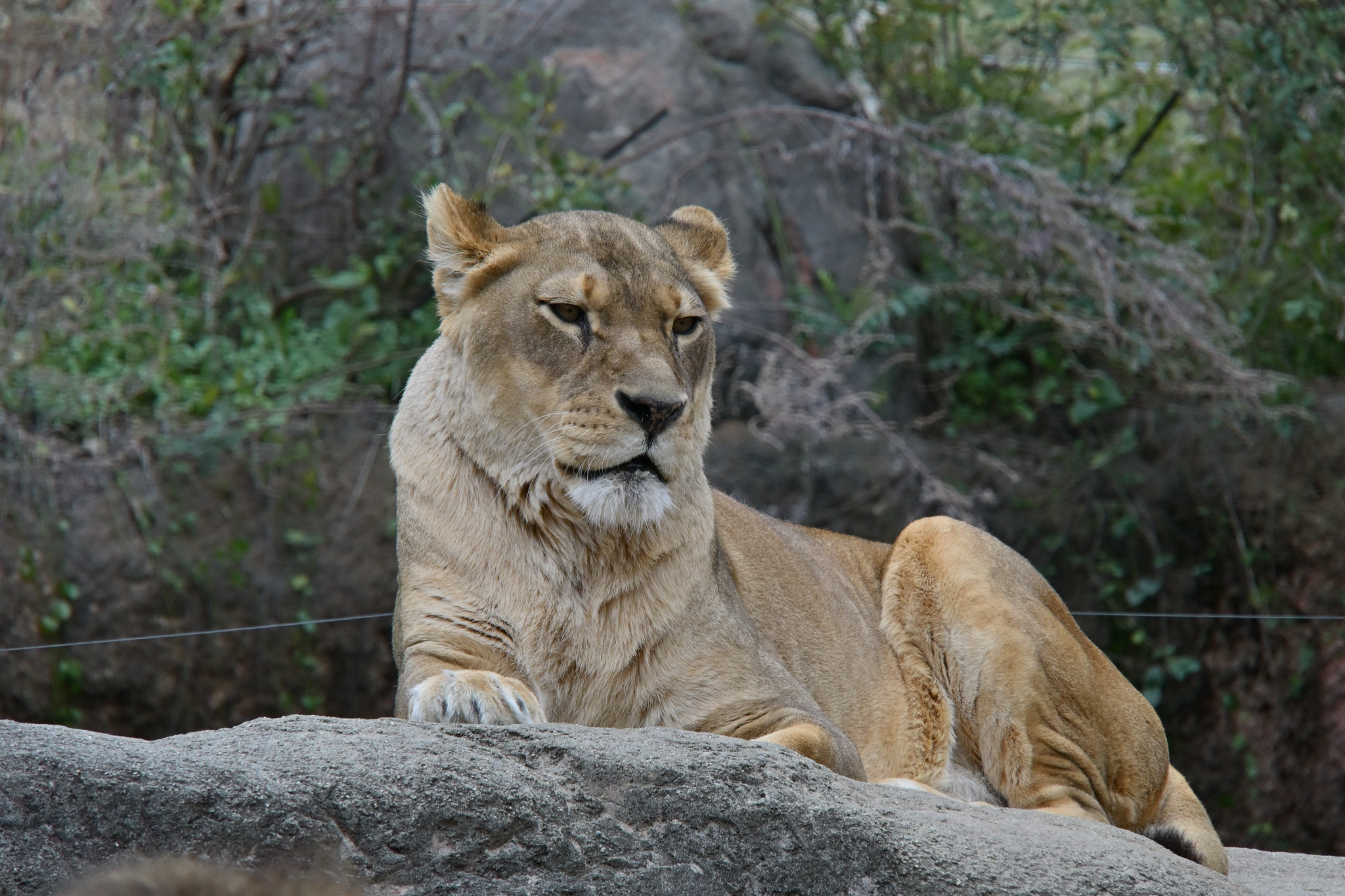 さて、ライオンを観察すると、オスライオンはずーっと、写真の通り動きもなく眠たそうに佇んでいました。一方メスライオンは、キリッとした表情で遠くを見つめていました。