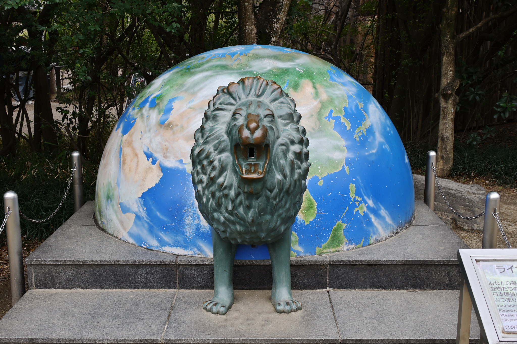 こちらは、ライオン舎を出ると在るライオン募金の像です。硬貨を入れるとガオーと鳴のだとか。。。