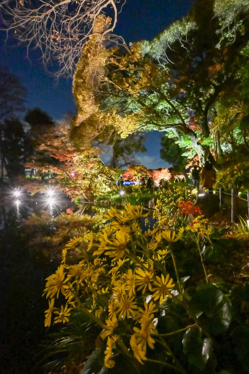 投稿を表示ライトアップで浮かび上がる紅葉と松の木でしょうか?青い色彩との対比が美しいですね~。紅葉を引き立たせるためにかなり考えられたライトアップの様な気がしました。スマホの現像、かなりの性能ですね。美しさ十分です。^^