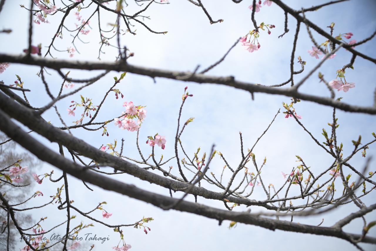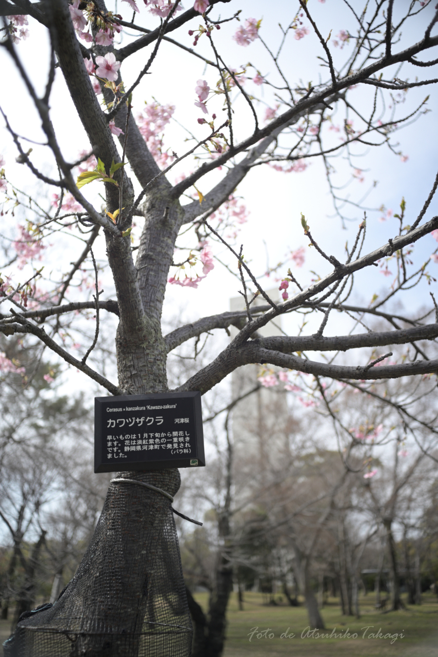 河津桜は、平和塔の近くにまとまって植樹されていました。