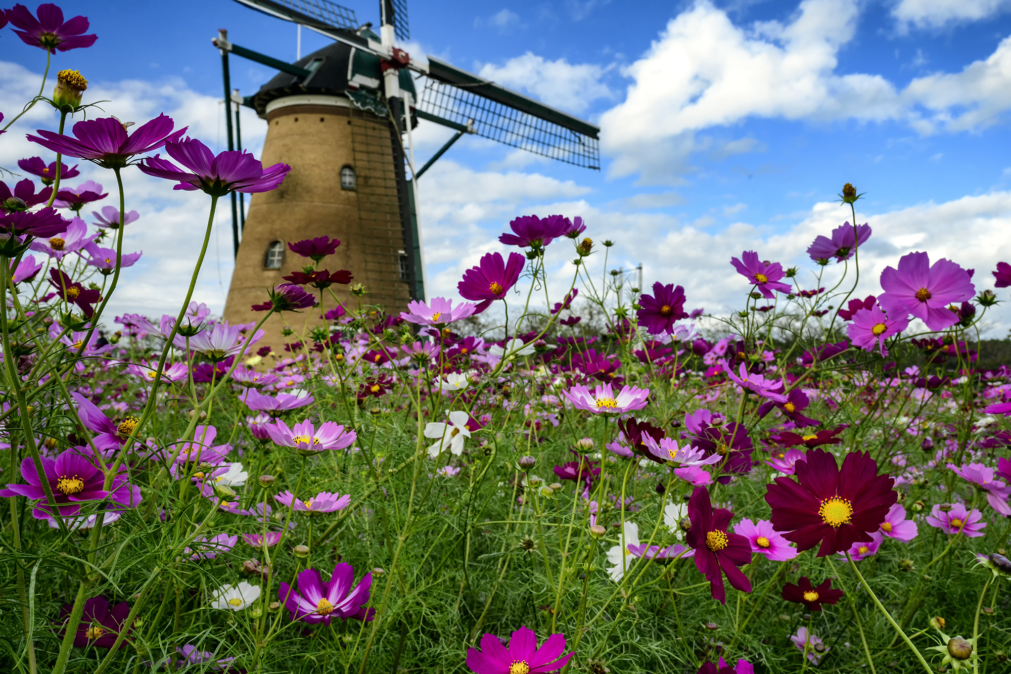 投稿を表示ハウステンボスかと思いましたが。青空に風車とコスモスがとても美しく映えていますね。素敵な作品です。^^