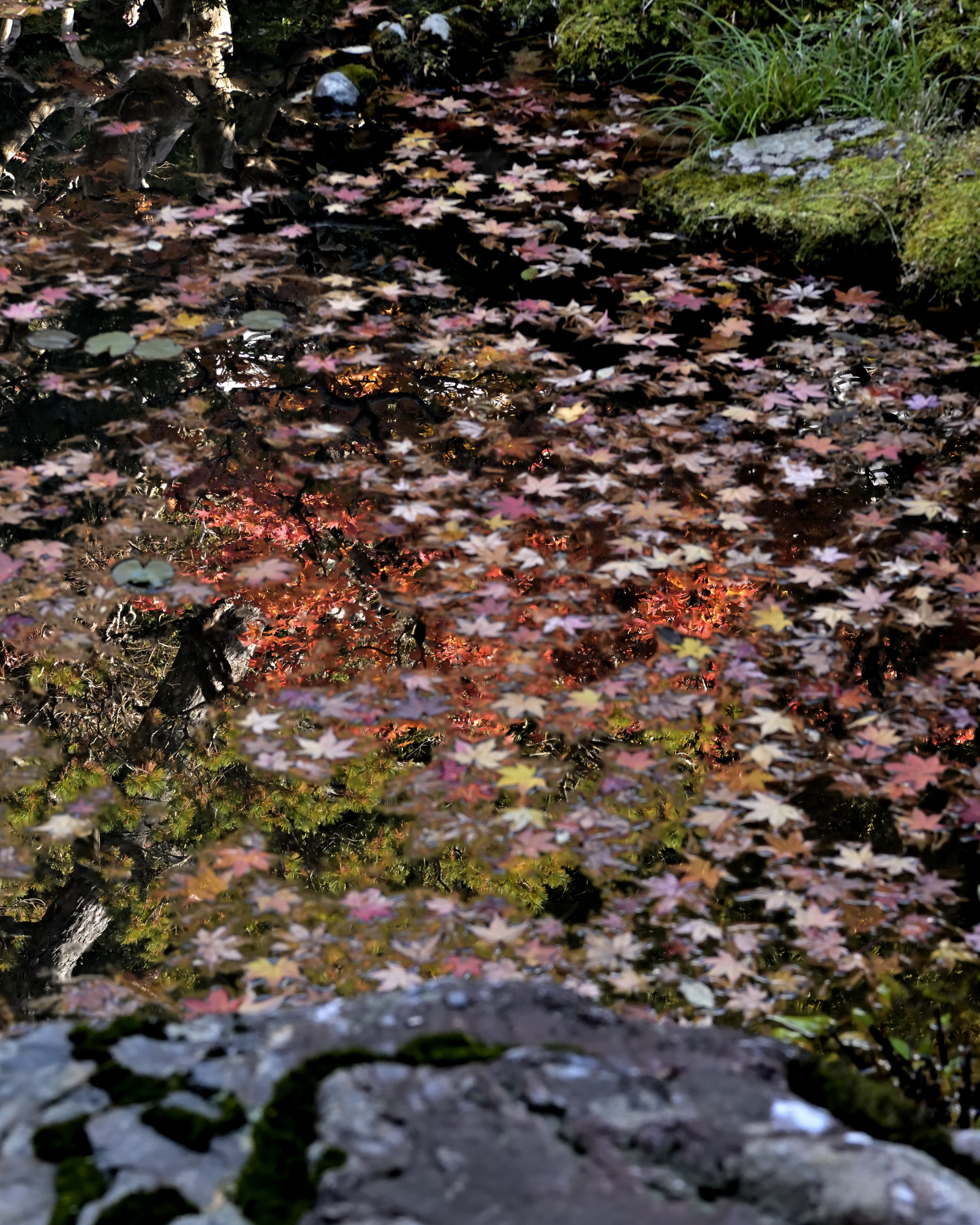 このように色とりどりの多くのモミジが浮かんだものもきれいですね。